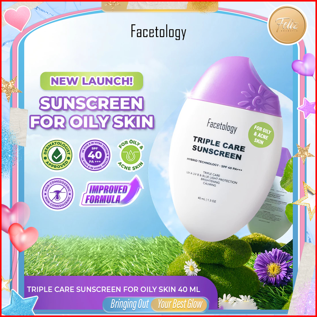 Feliz Facetology Triple Care Sunscreen For Sensitive Acne Oily Skin Spf 40 Pa 40ml