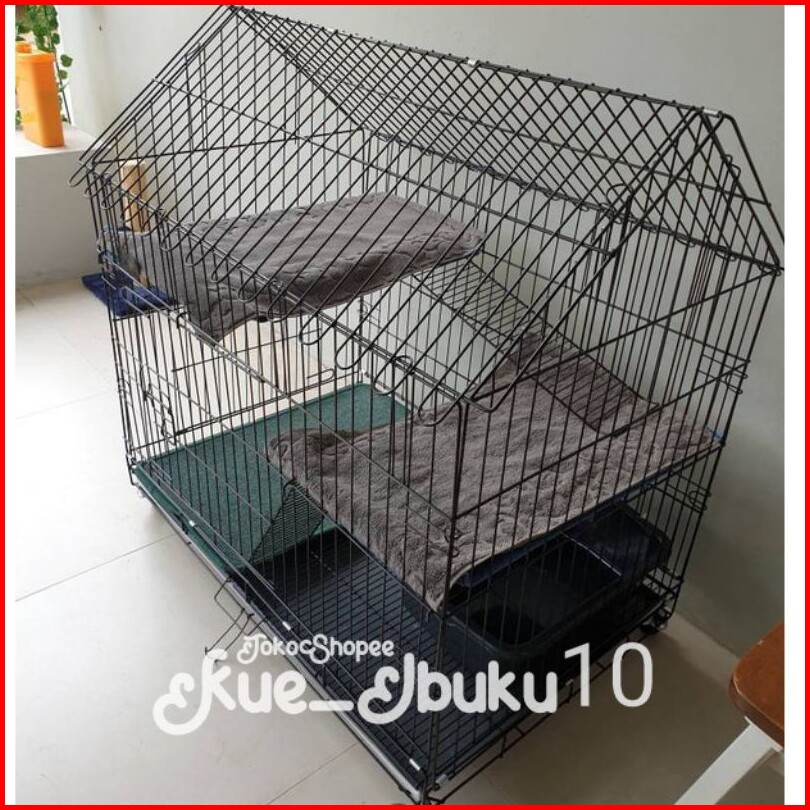 Kandang Kucing 2 Tingkat Atap Rumah Musang Hamster Kelinci Tupai Bajing Iguana Garangan Anjing Hewan Peliharaan Sangkar
