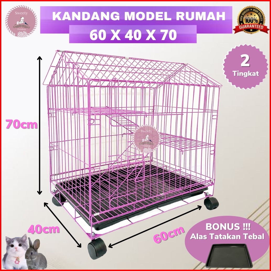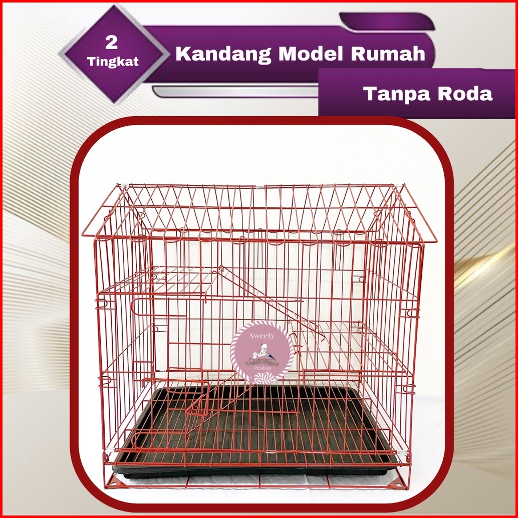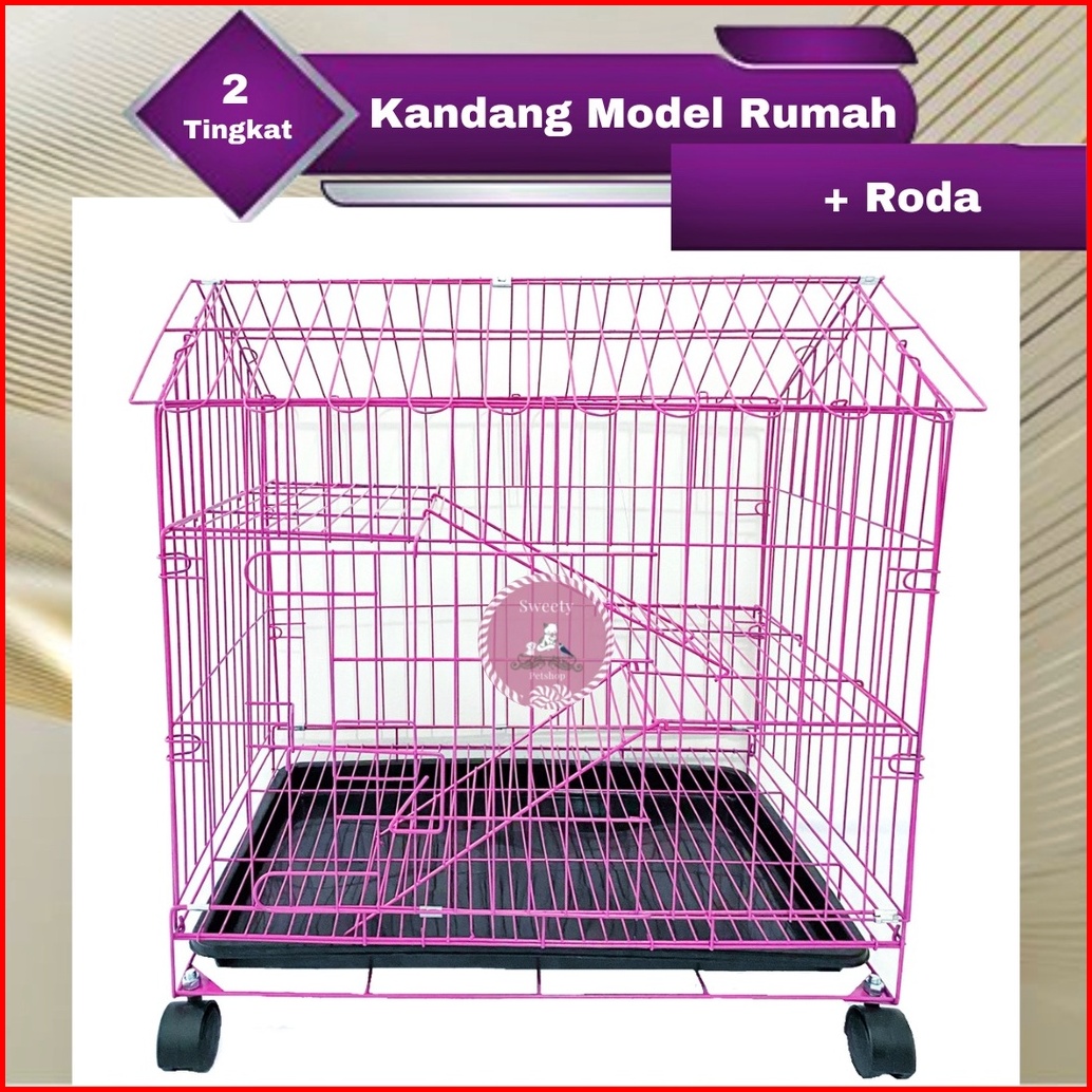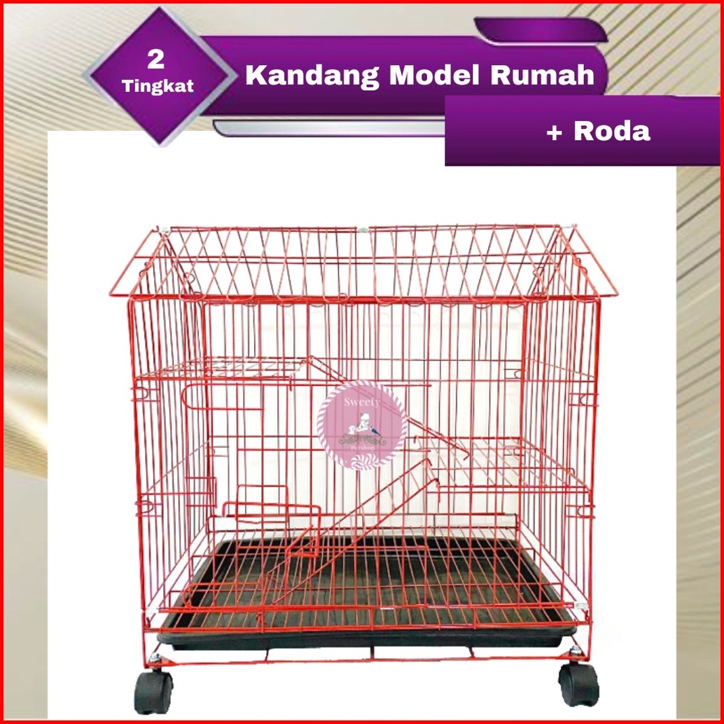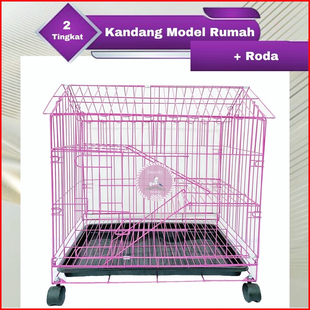 Kandang Kucing Unik 2 Tingkat Model Rumah 60x40x70 Roda