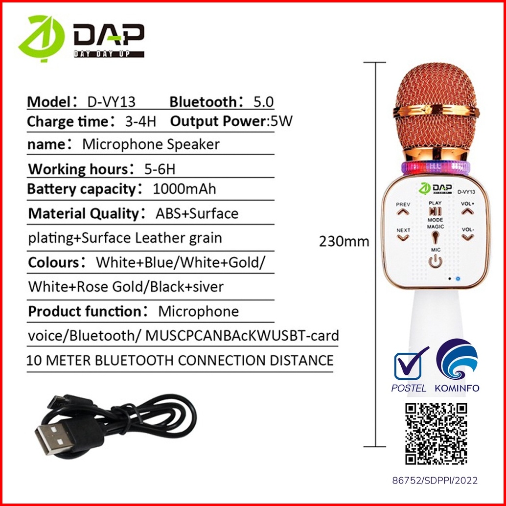 Dap Mikrofon Bluetooth Karaoke D-vy13 Garansi Resmi 1 Tahun