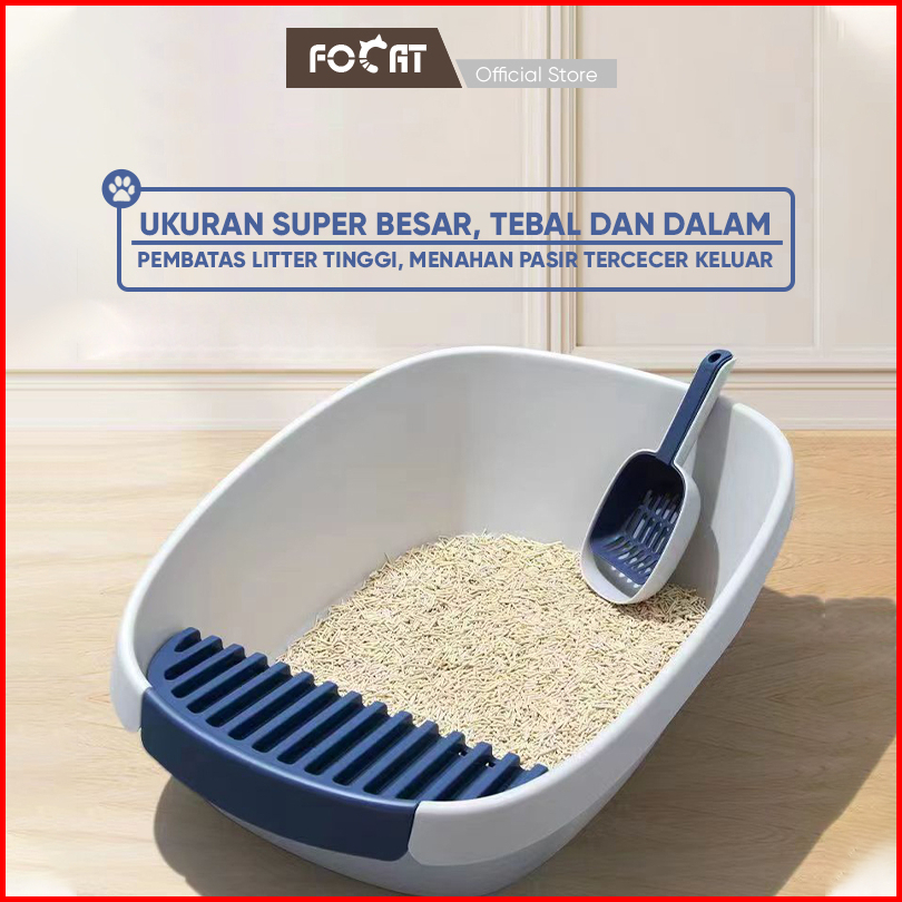 Focat Pet Litter Box Open Top Extra Besar M28 Wadah Pup Anabul Baskom Pasir Anjing Kucing Free Sekop