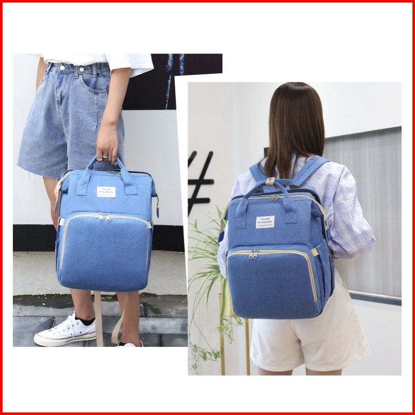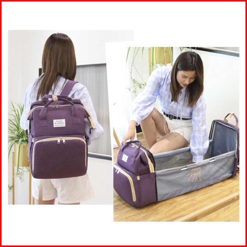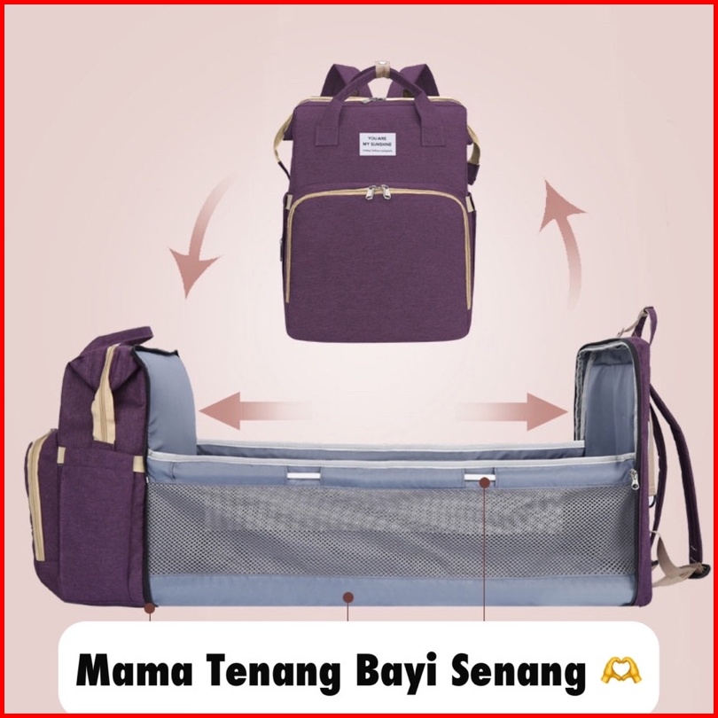 Tas Bayi 6003 - Tas Bayi Multifungsi Youaremysunshine Tas Perlengkapan Bayi Multifungsi 2in1 Kasur Tidur Tas Ransel Diap