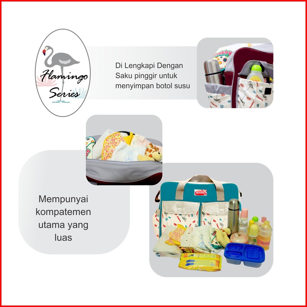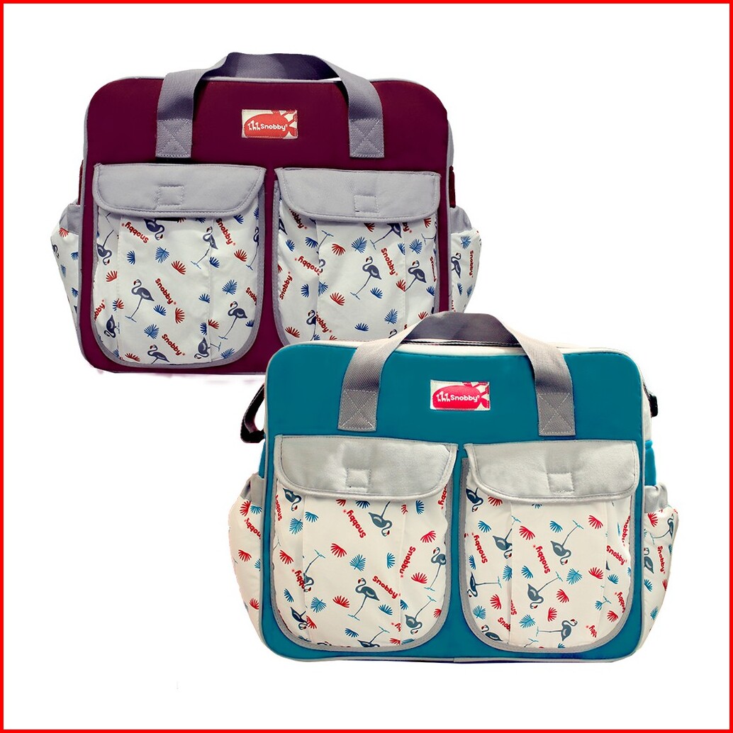 Snobby Tas Bayi Besar Diaper Bag Flamingo Series Aplikasi Saku Print Tpt5273