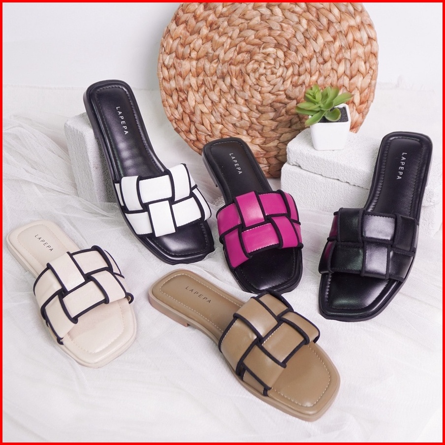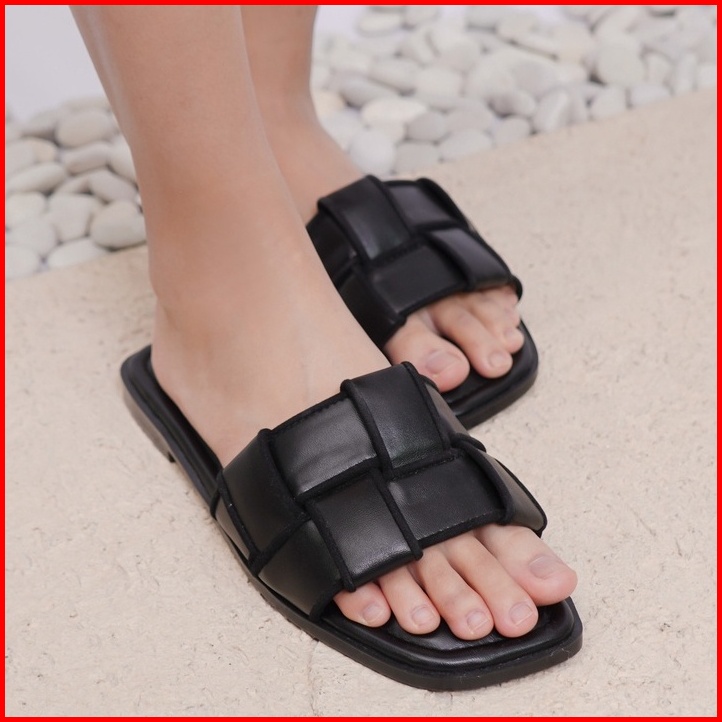 Lapepa Yuk - Nova Sandal Wanita Teplek Korea Casual Size 36 - 40 Sendal Slop Empuk Flat Cewek Kasual Rumahan Warna Hitam