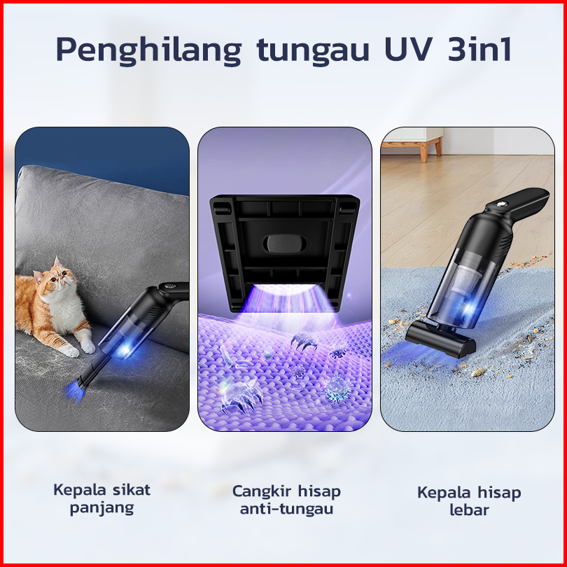 Amazefan 19000pa Uv Vacuum Cleaner Portable Kucing Anti Dust Mite Mobil Kasur Anti Tungau Penyedot Cordless Handheld Cle