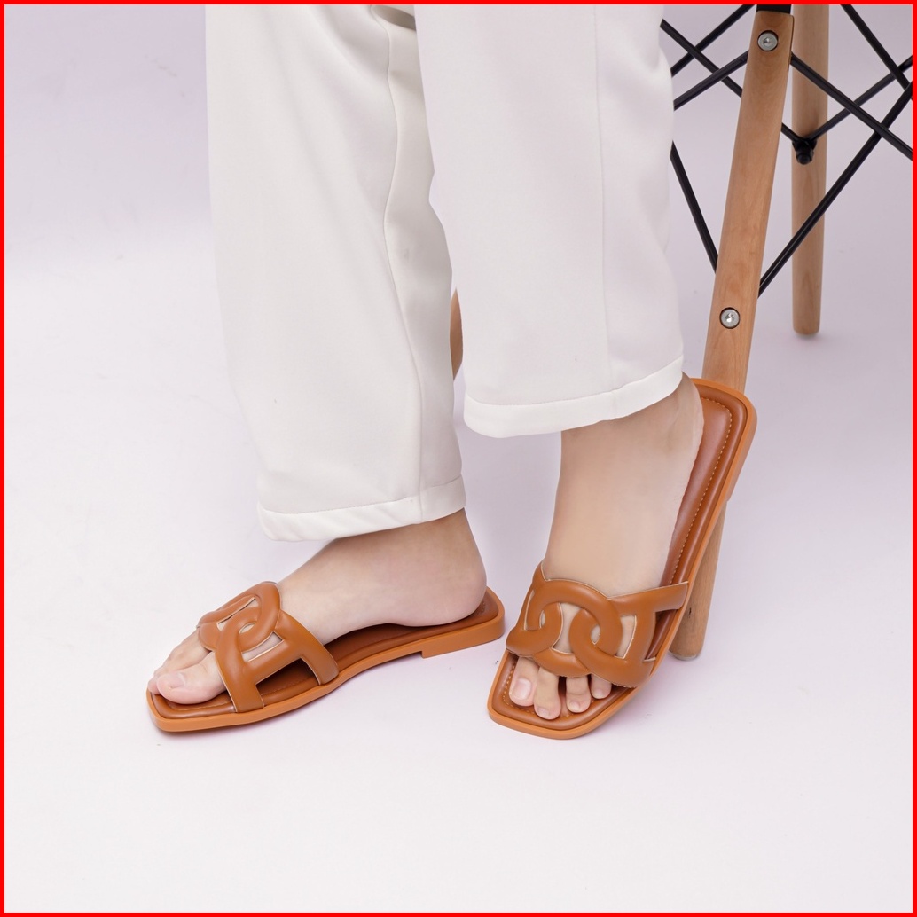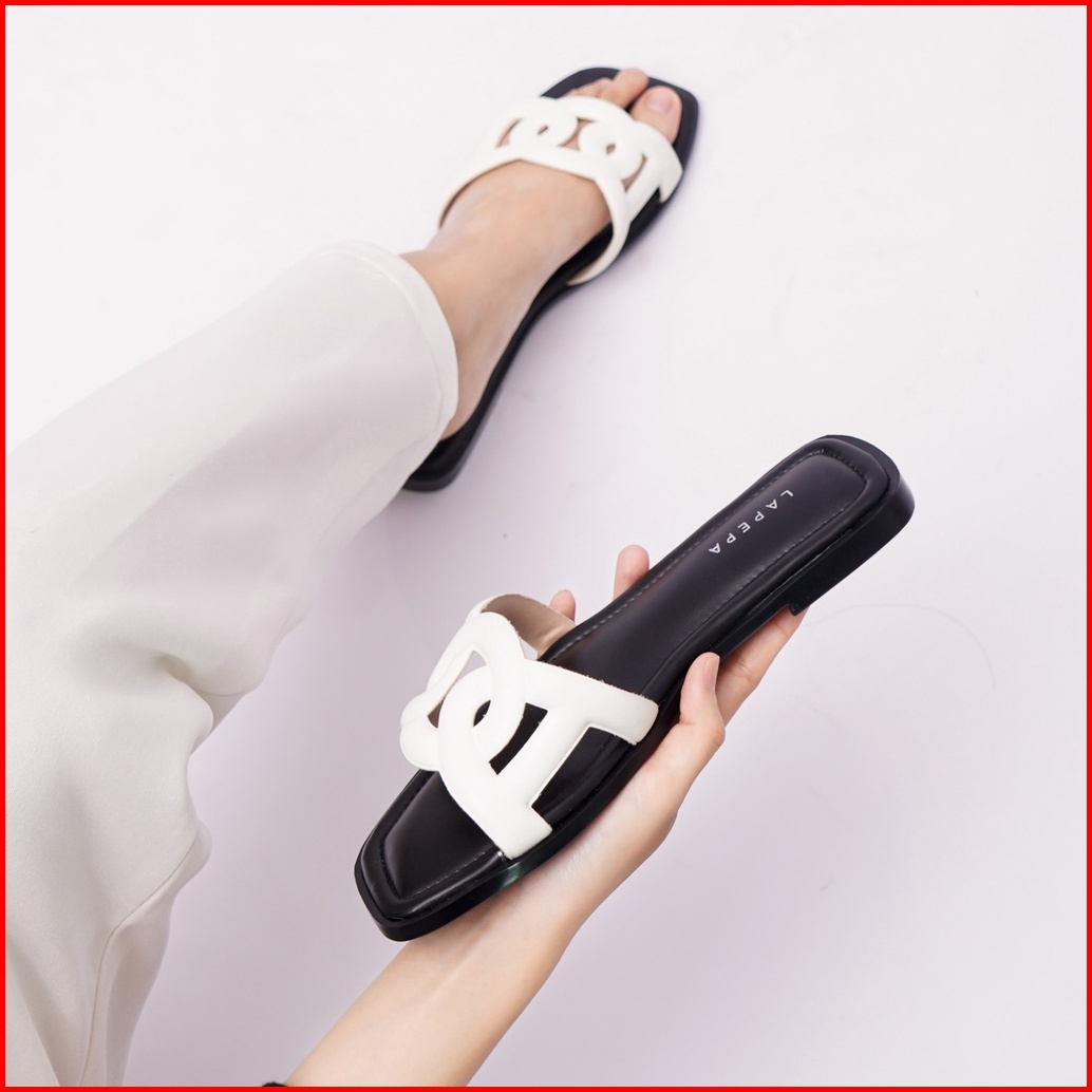 Lapepa Yuk - Sora Sandal Wanita Teplek Korea Casual Size 36 - 40 Sendal Slop Empuk Flat Cewek Kasual Rumahan Warna Hitam