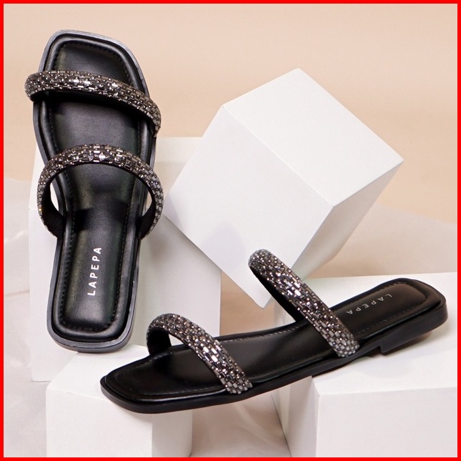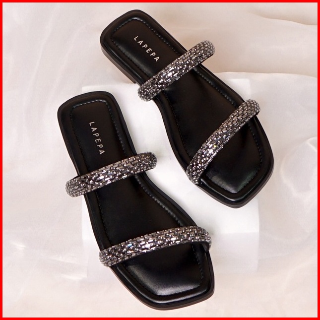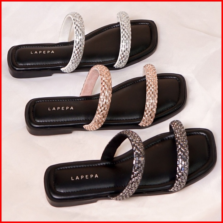 Lapepa Yuk - Jasmine Sandal Wanita Teplek Mewah Blink Kristal Size 36 - 40 Sendal Slop Rumah Flat Cewek Pergi Jalan Blin
