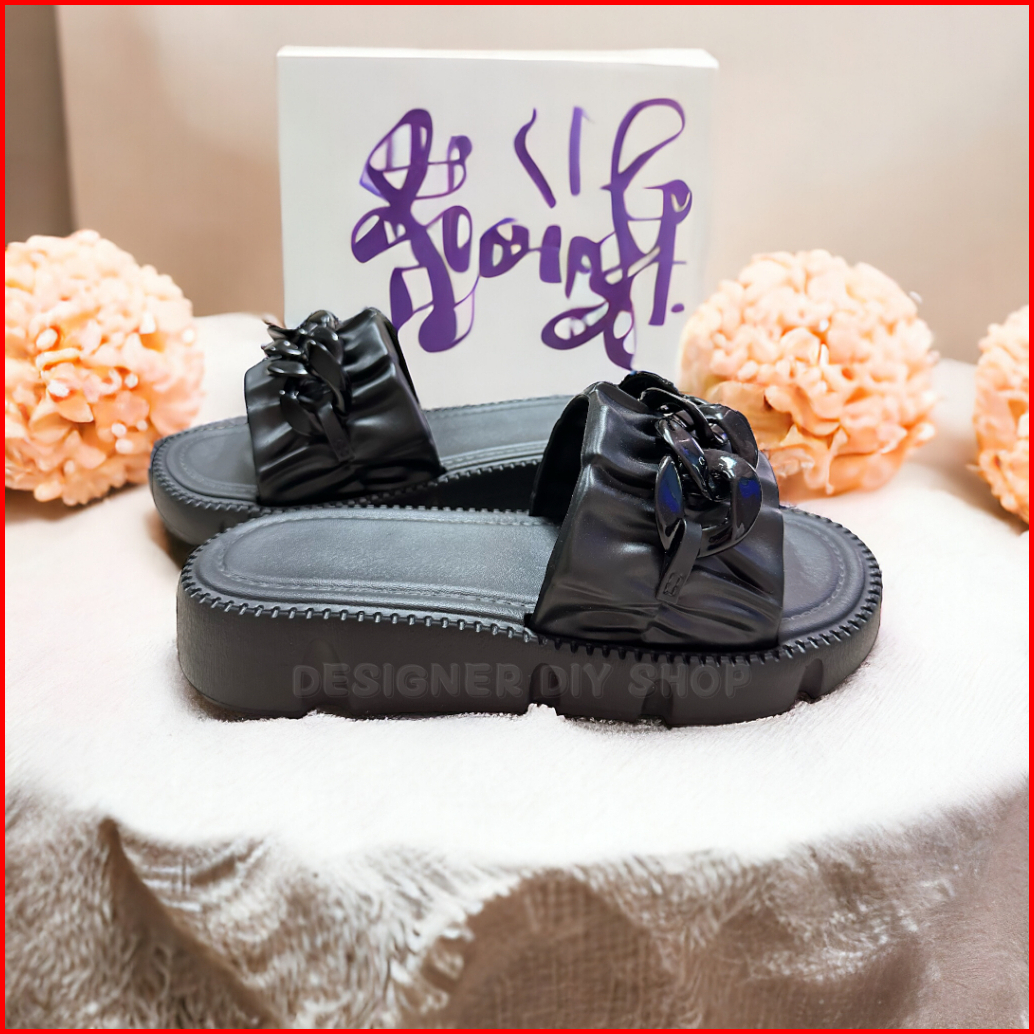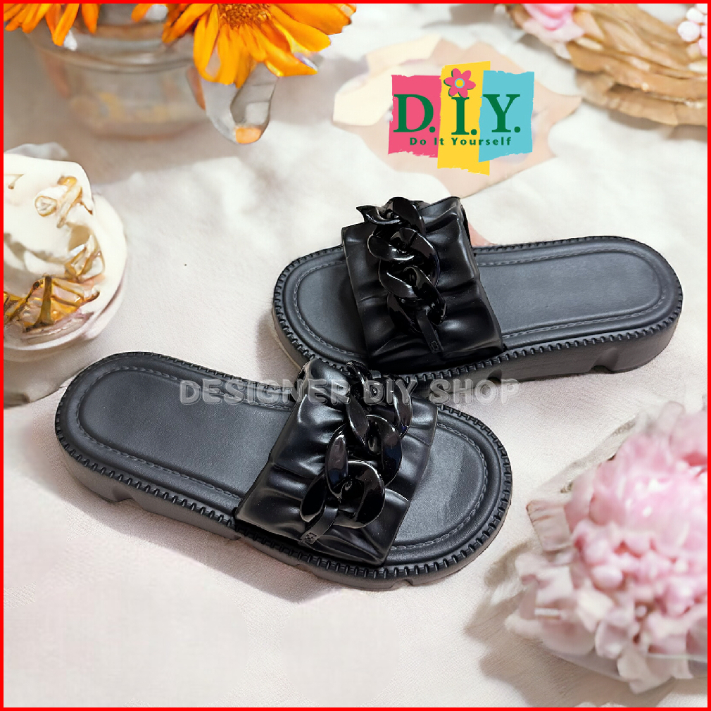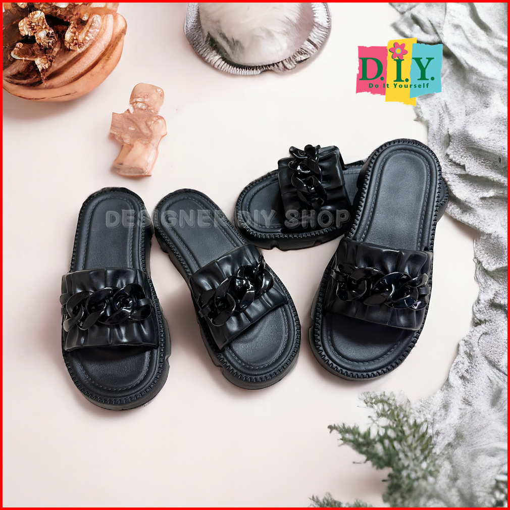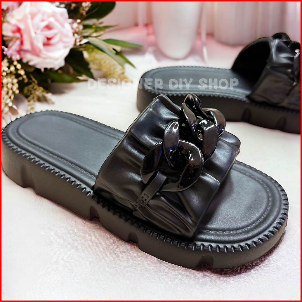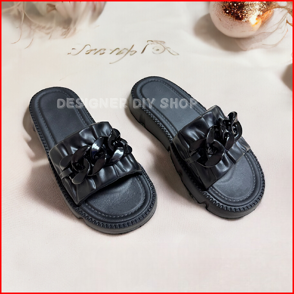 Sandal Wanita Slop Elegan Rantai Jelly Slip On Model Baru 2024