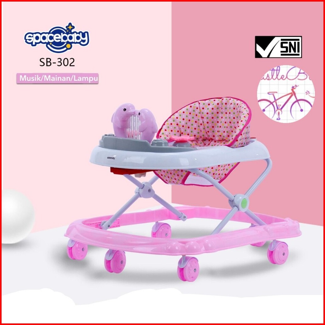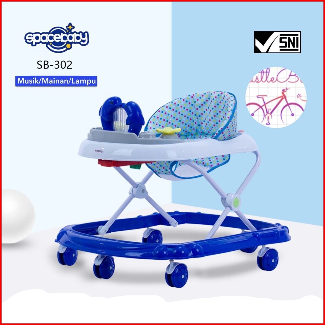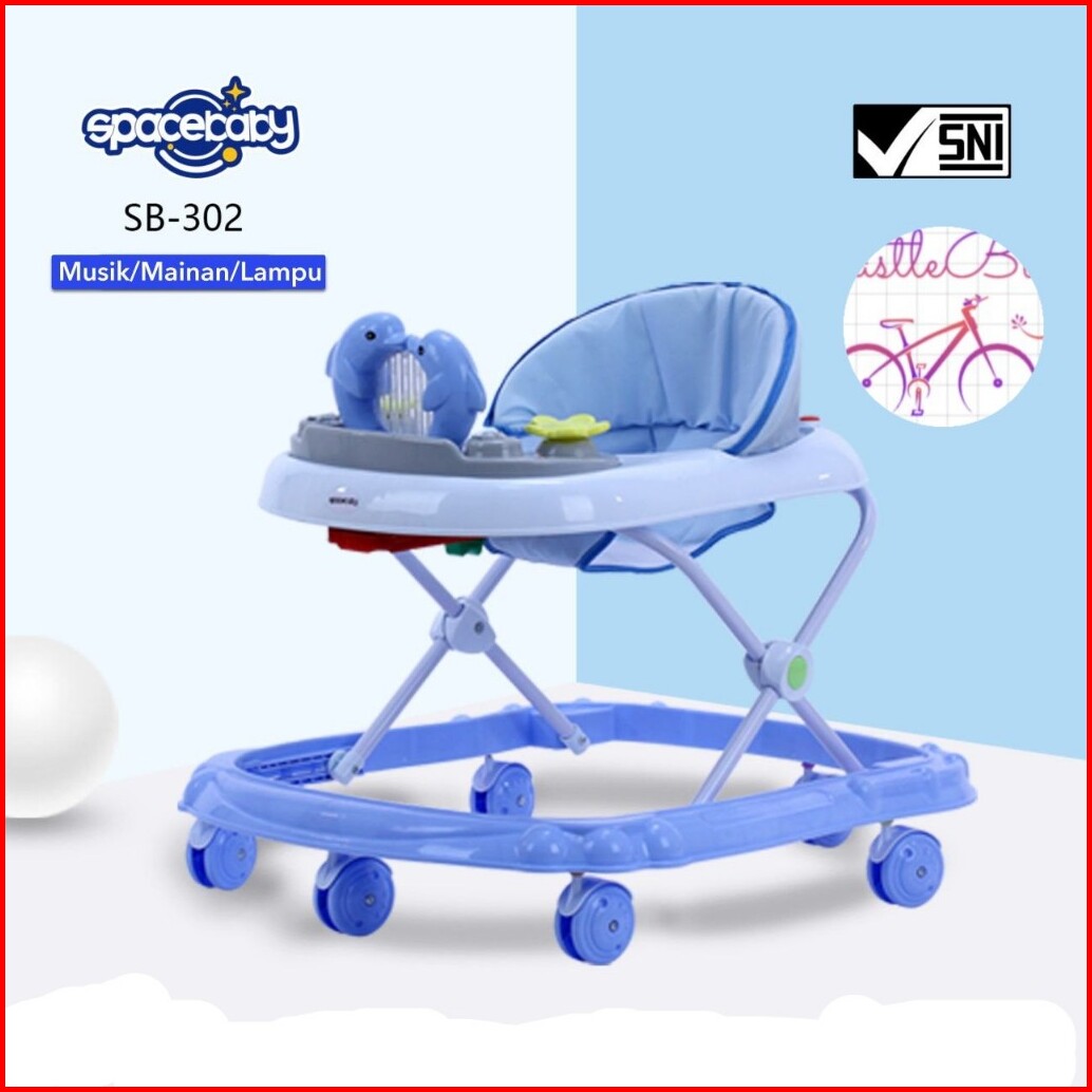 Spacebaby Sb302 Baby Walker Dolphin Ic Music Mainan Bisa Dilepas Size Besar 6-18 Bulan