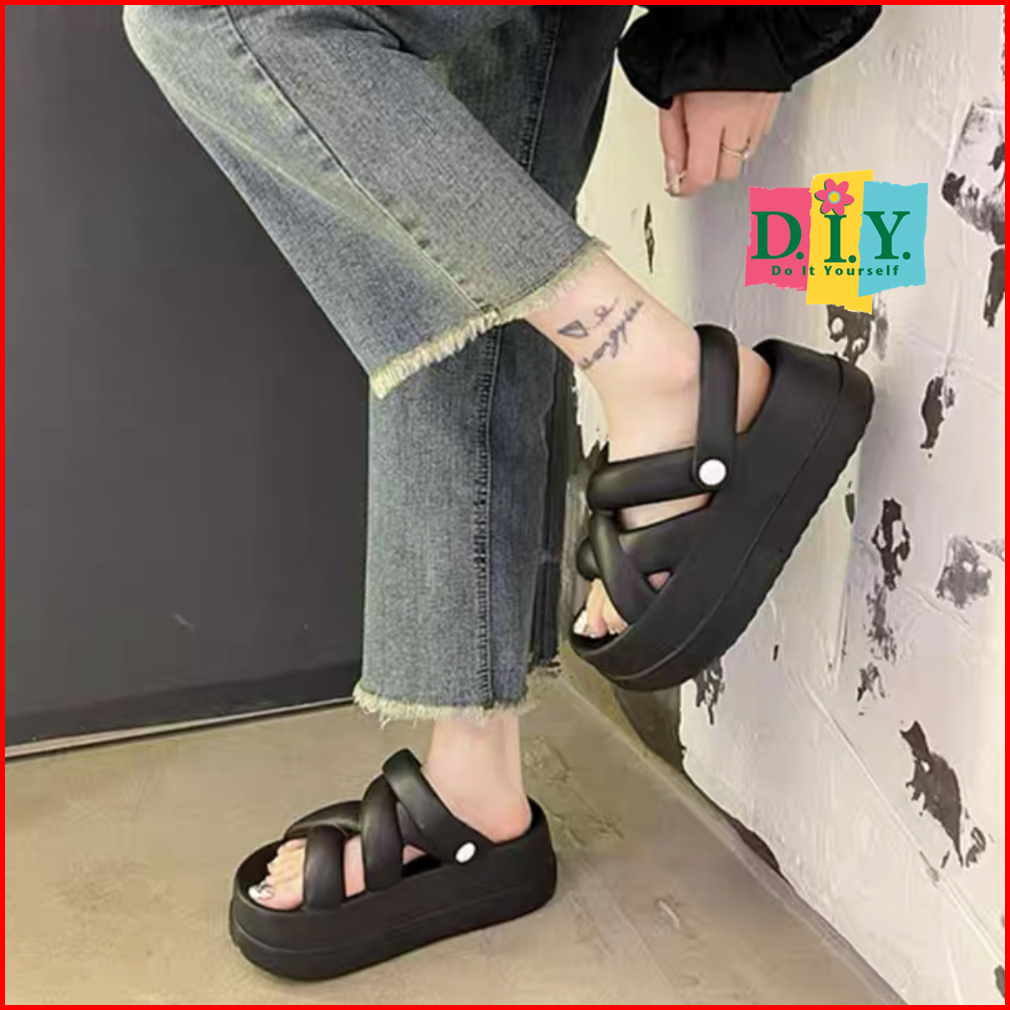 Sandal Wedges Platform Wanita Backstrap Tali Sol Tebal Sendal Jelly Super