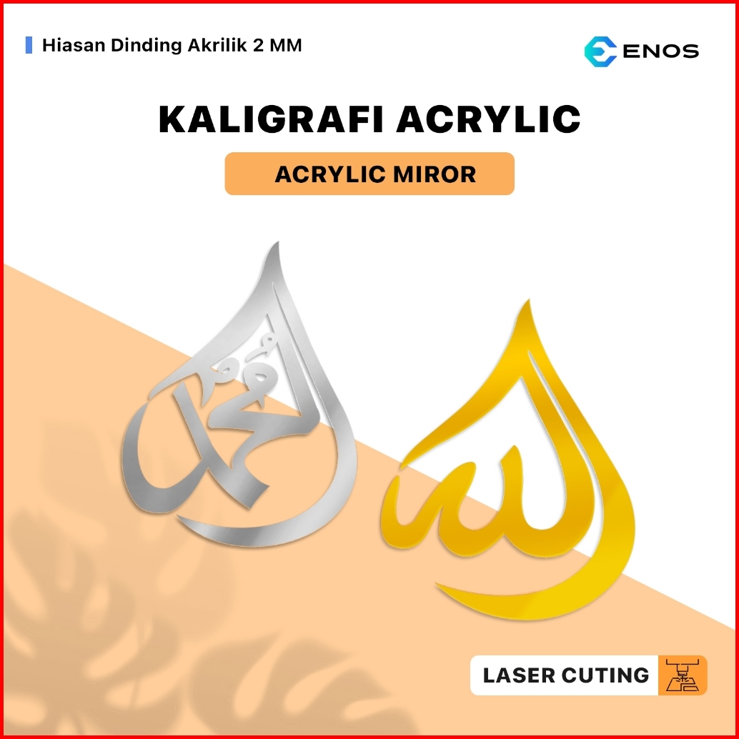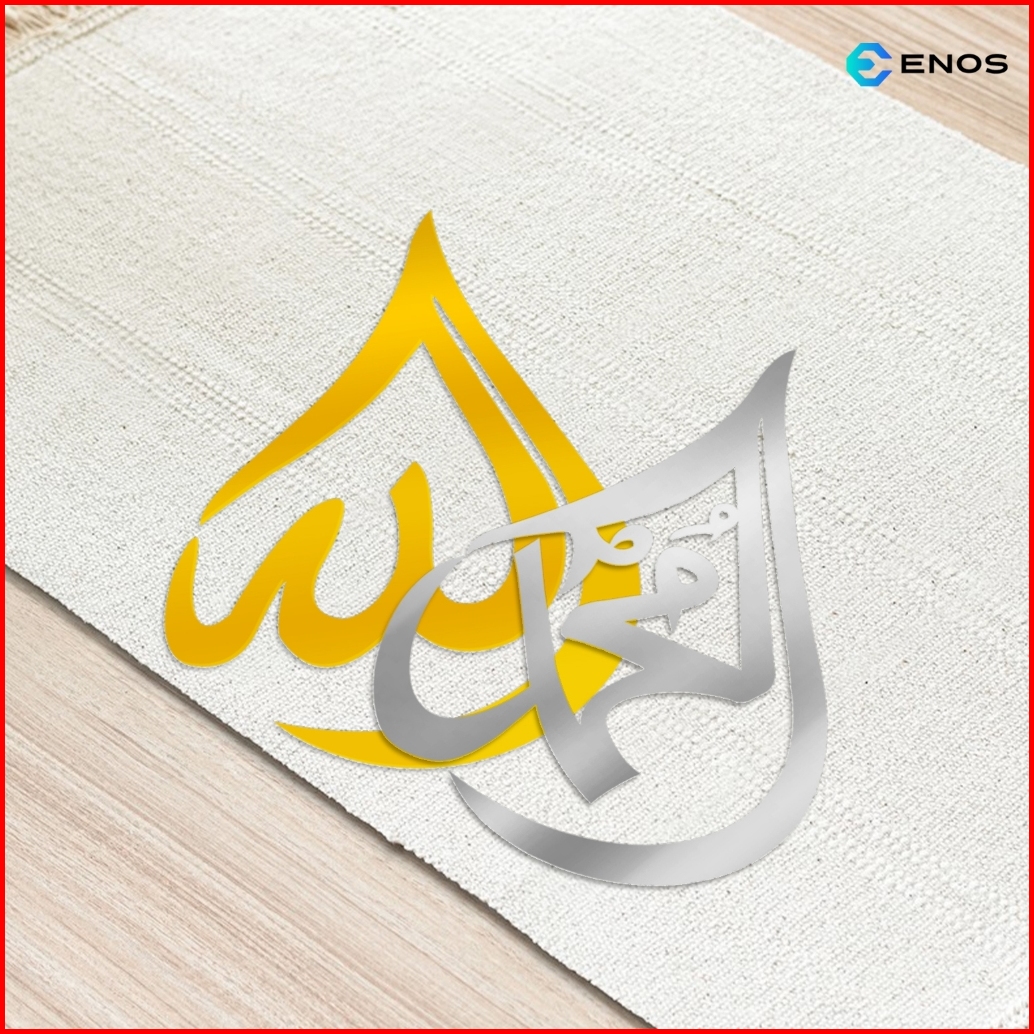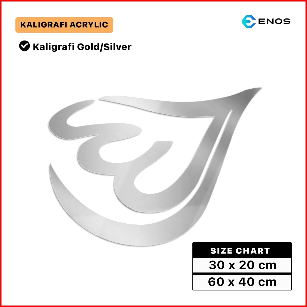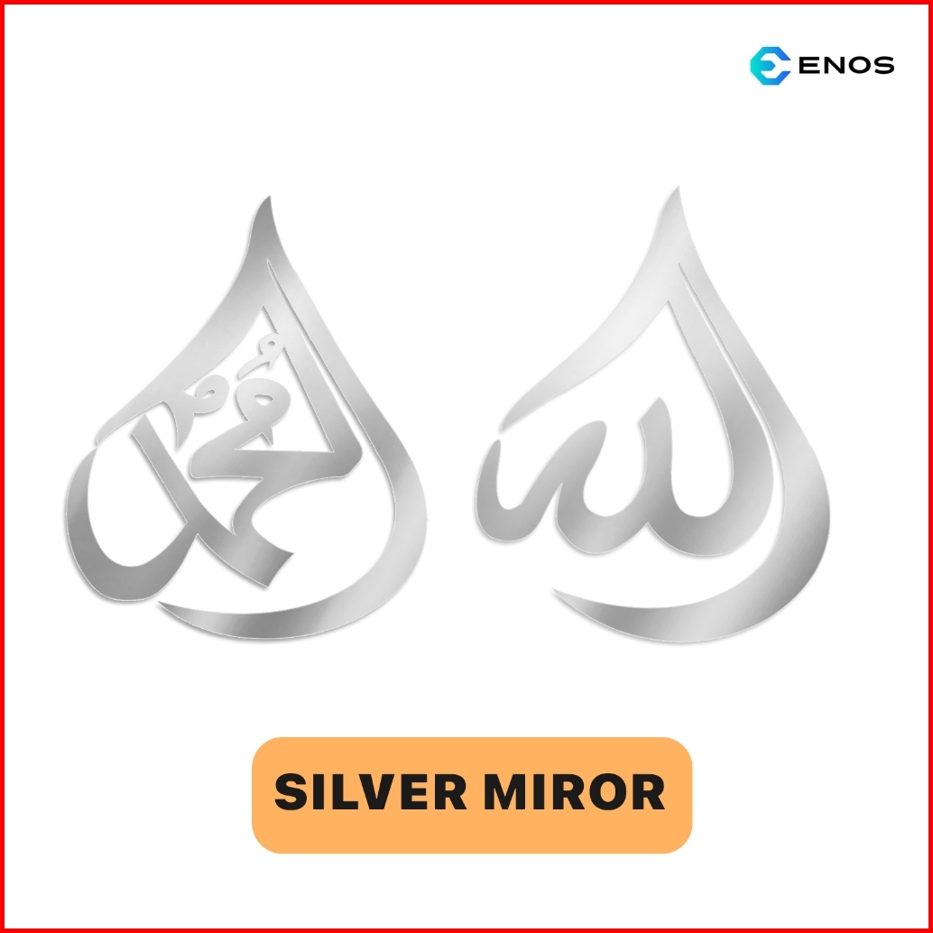 Kaligrafi Allah Muhammad 1 Set Bahan Akrilik Mirror Silver 2mm High Quality Hiasan Pajangan Dinding Dekorasi Ruangan