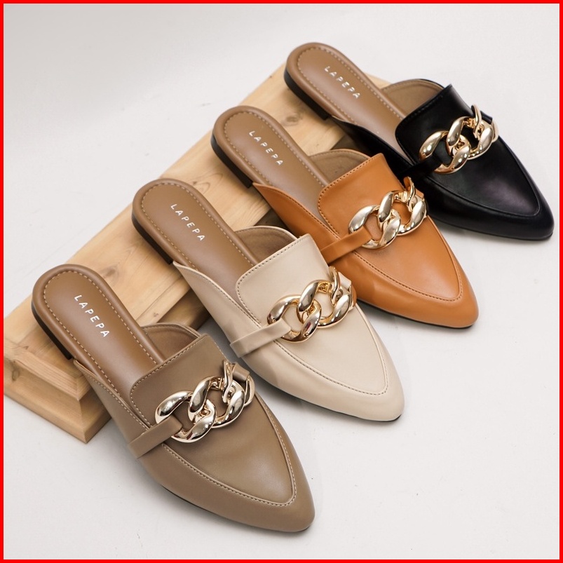 Lapepa Yuk - Amora Sepatu Sandal Wanita Slip On Mules Size 36 - 40 Casual Sendal Slop Teplek Flat Ujung Lancip Tertutup