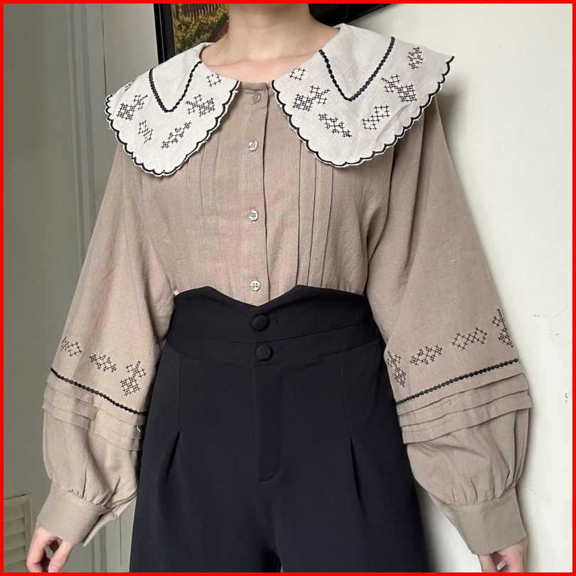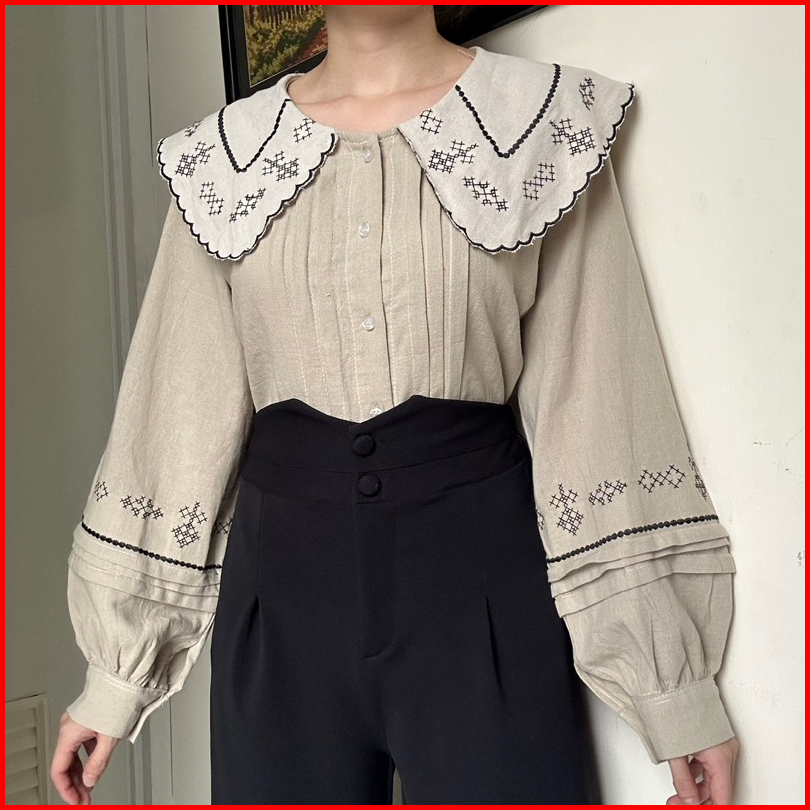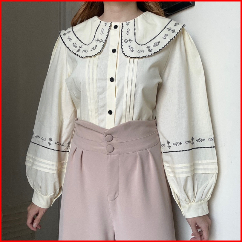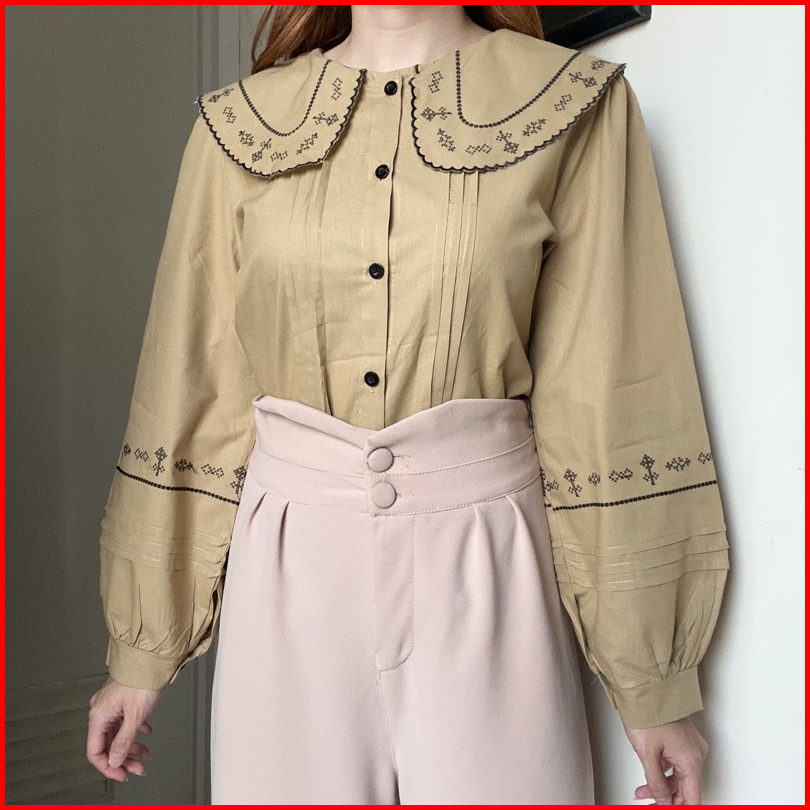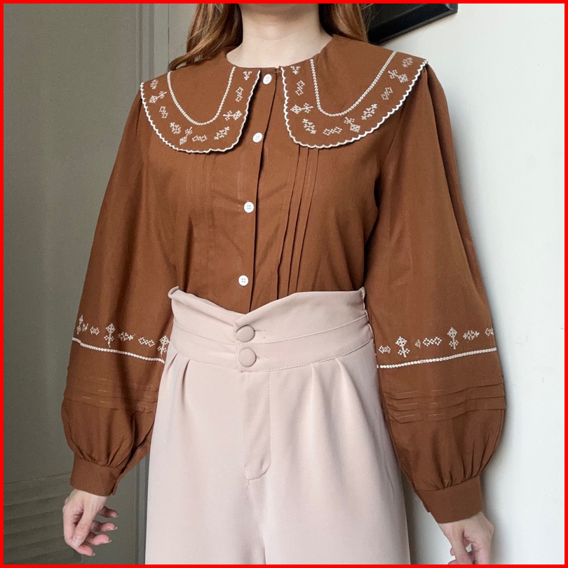 Jisoo Top Atasan Kemeja Blouse Linen Bordir Korean Style By Biel The Label