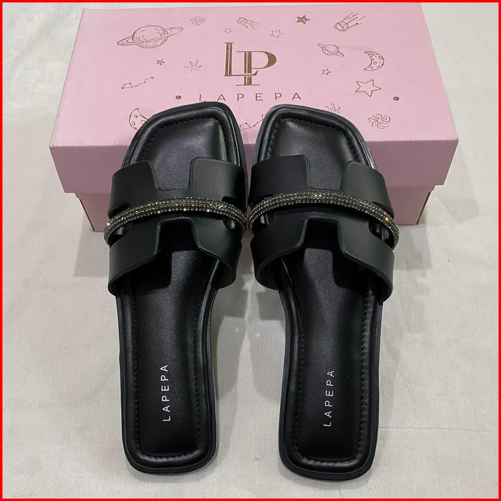 Lapepa - Tiara Sandal Flat Wanita Teplek Casual Model Berlian Sendal Slop Empuk Cewek Kasual