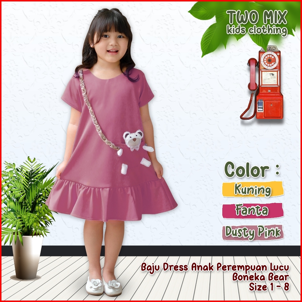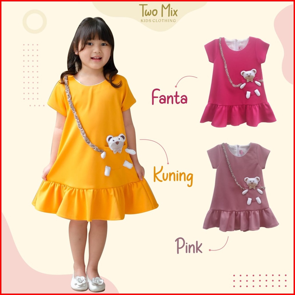 Two Mix - Baju Dress Anak Perempuan Lucu Boneka Bear 1-8 Tahun 4300