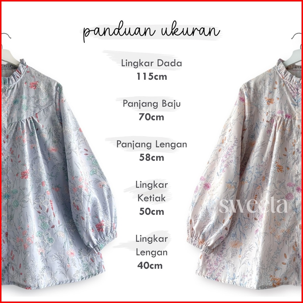 Sweeta Blus U Rample Katun Bordir Cotton Ld 115 Cm Atasan Pakaian Wanita Muslim