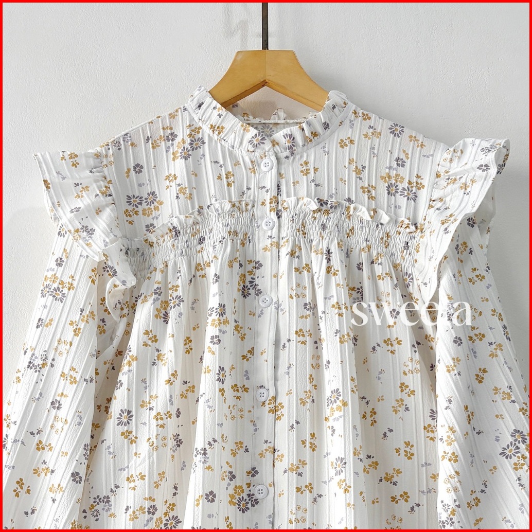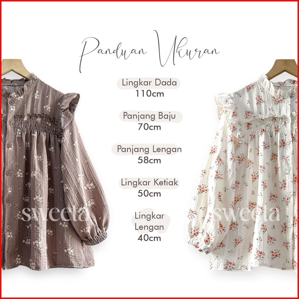 Sweeta Blus Rample Motif Lavanda Korea Style Ld 110 Cm Atasan Pakaian Wanita Muslim