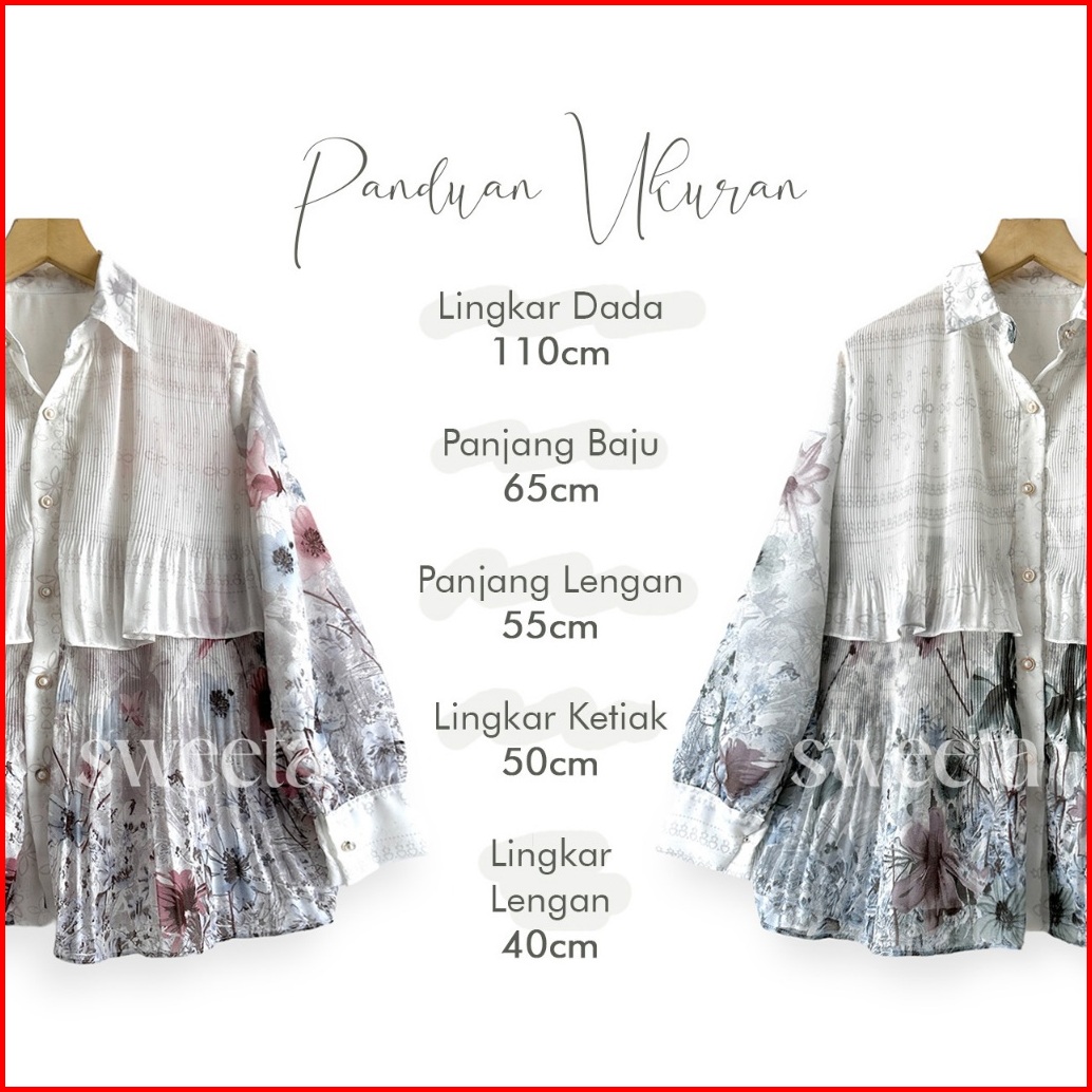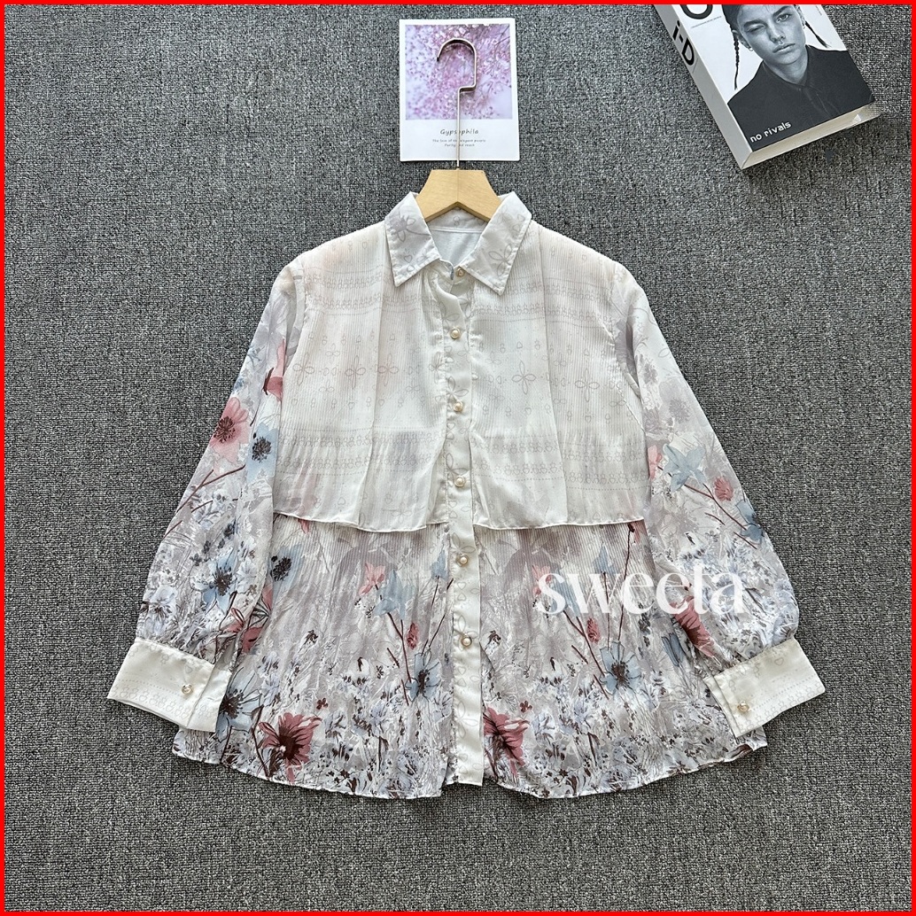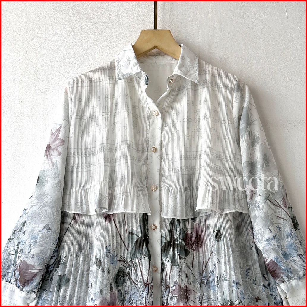 Sweeta Shirt Plisket Double Layer Floral Ceruty Full Furing Ld 110cm Korea Style Atasan Pakaian Wanita Motif Flower