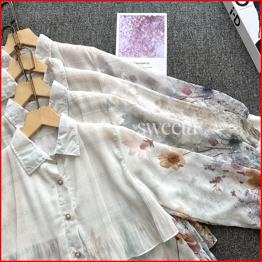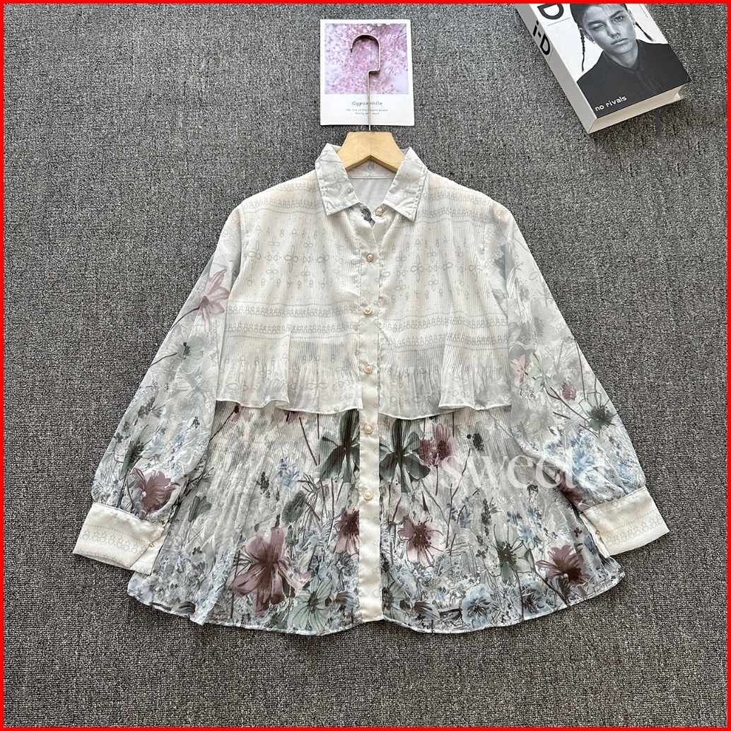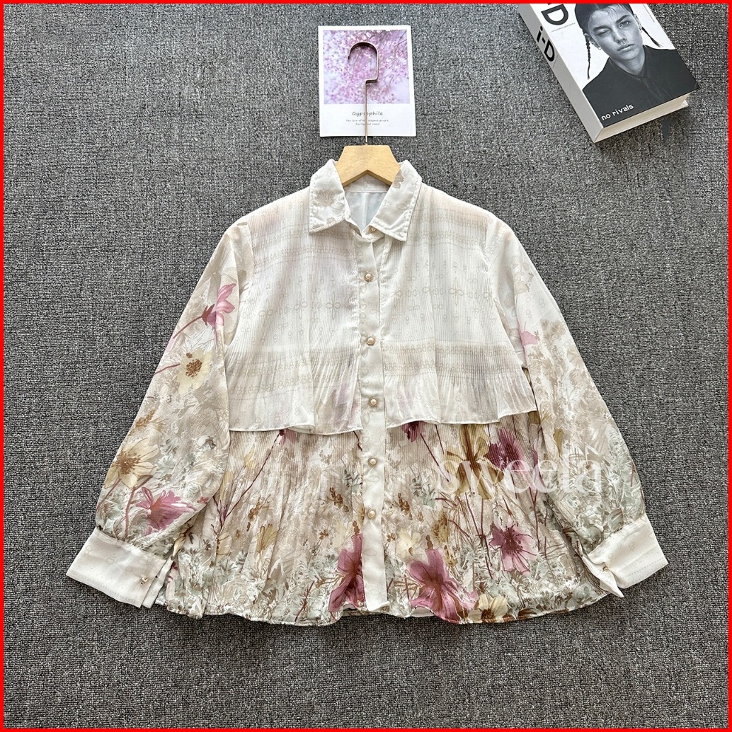 Sweeta Shirt Plisket Double Layer Floral Ceruty Full Furing Ld 110cm Korea Style Atasan Pakaian Wanita Motif Flower
