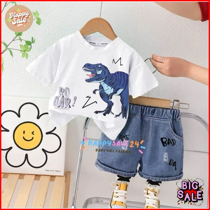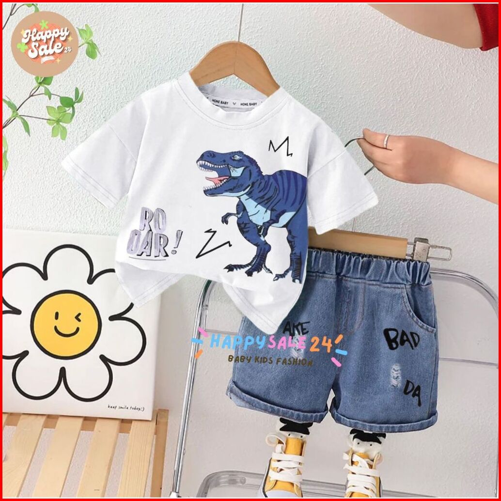 Setelan Jeans Anak Laki-laki Umur 1-5 Tahun Kaos Dinosaurus Anak Baju Anak Cowok Murah Outfit Anak Laki Kekinian