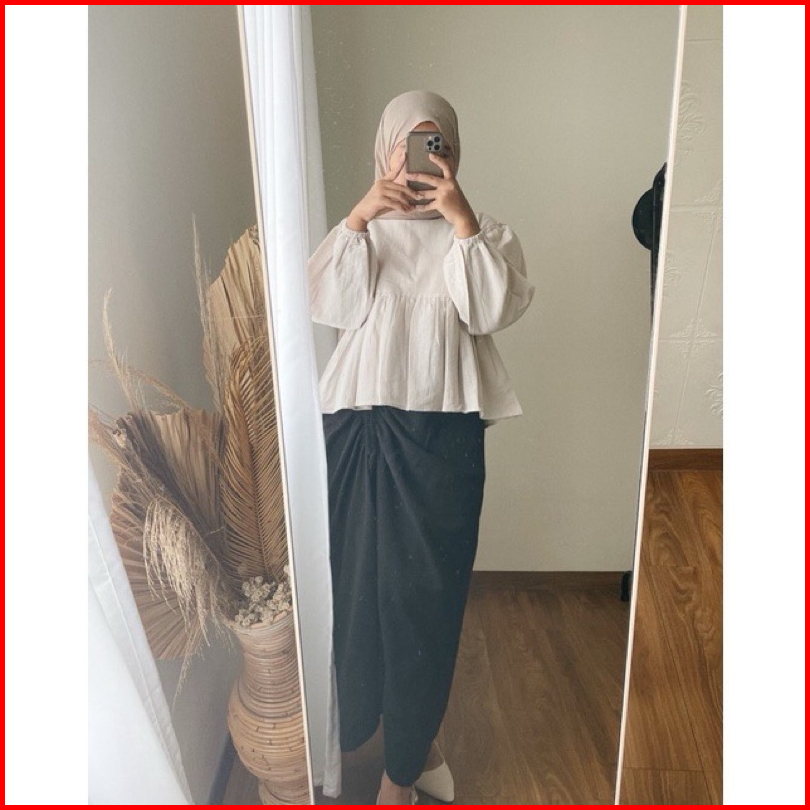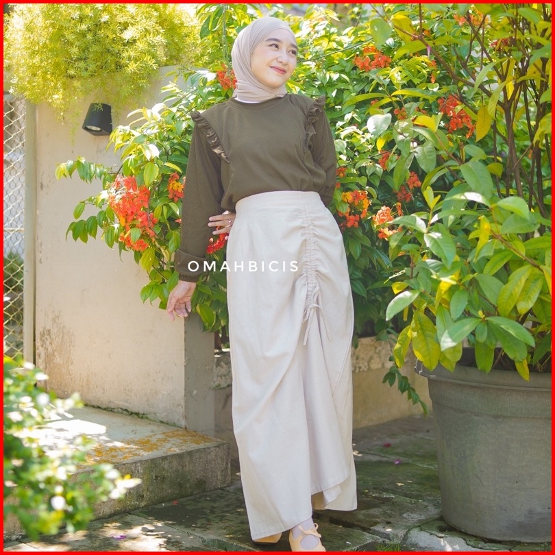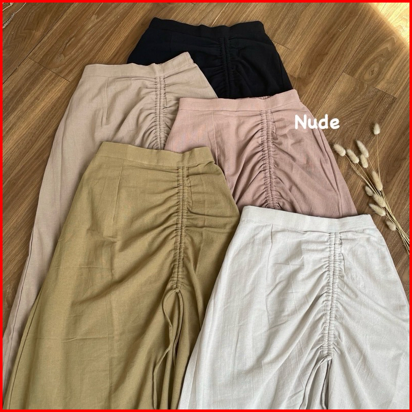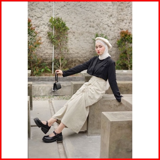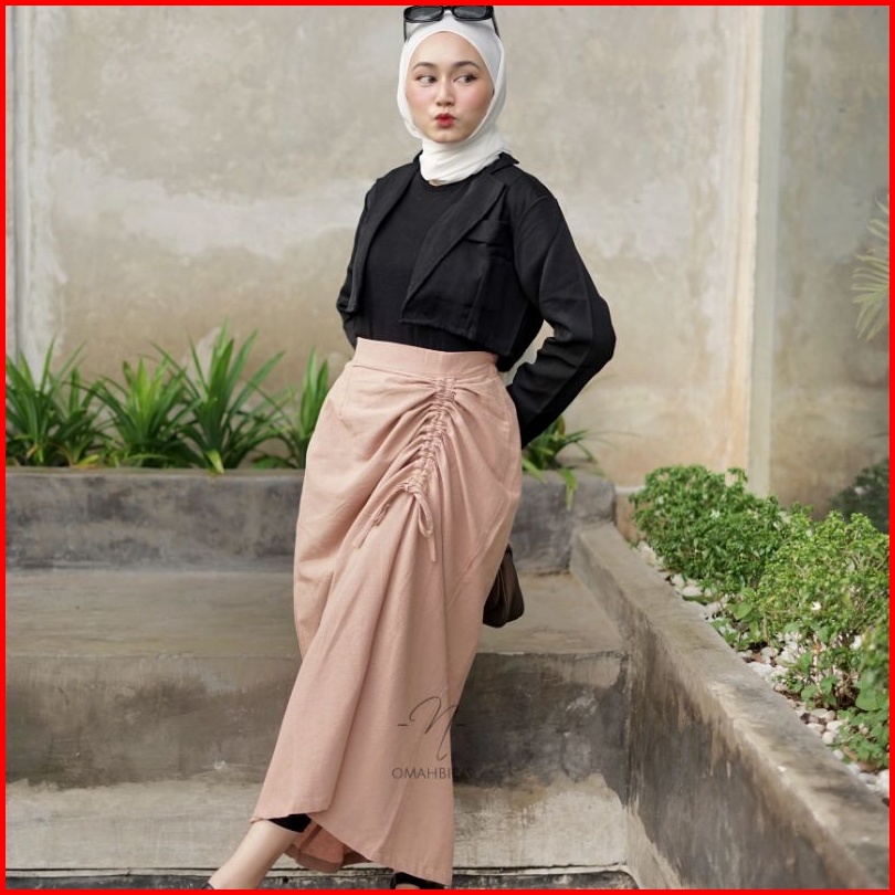 Haura Skirt - Korean Skirt Rok Serut Linen Import