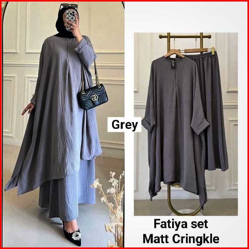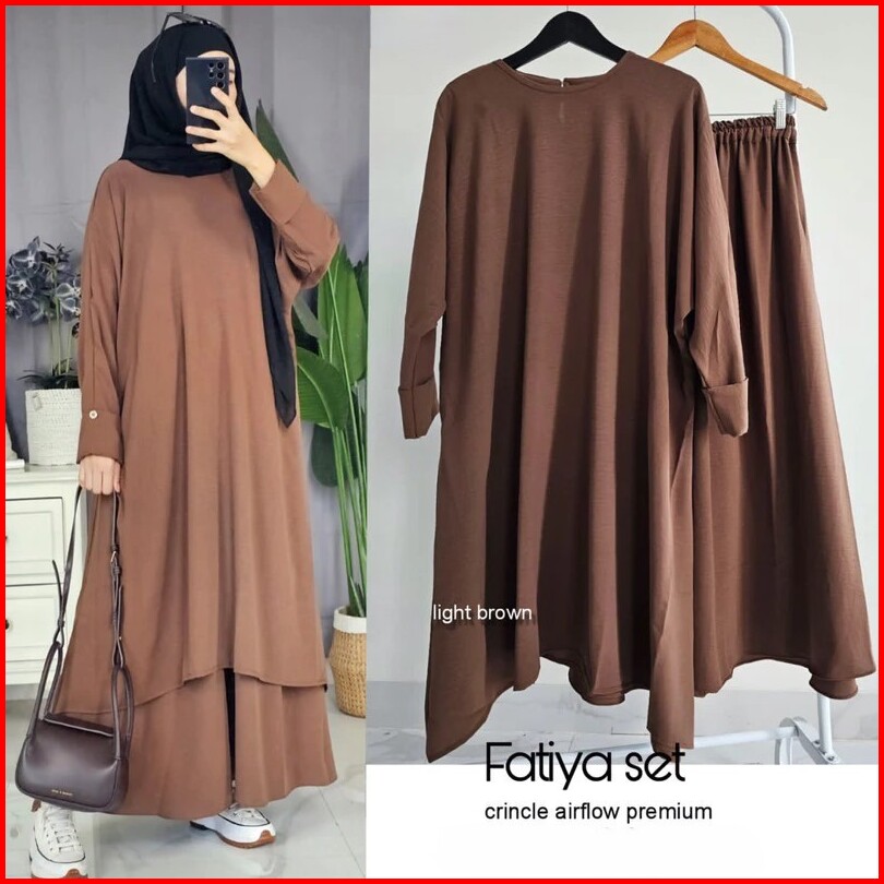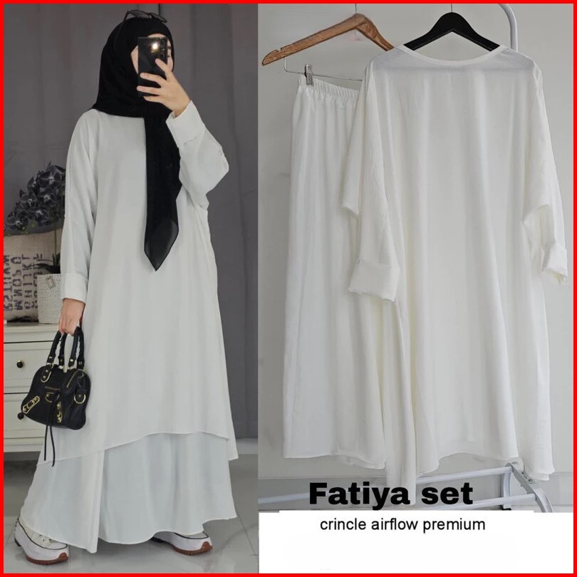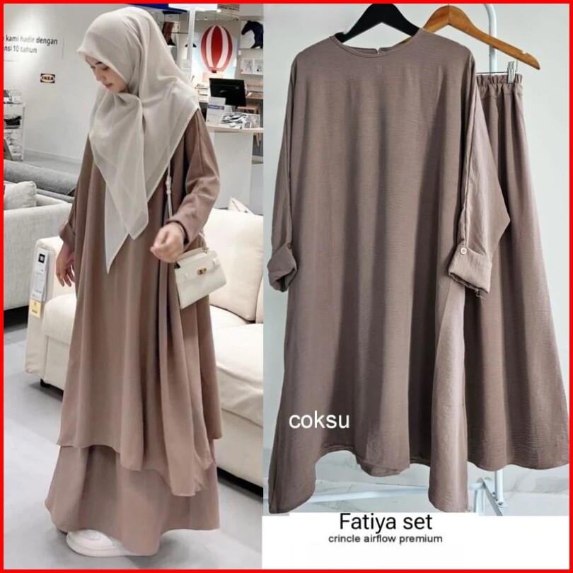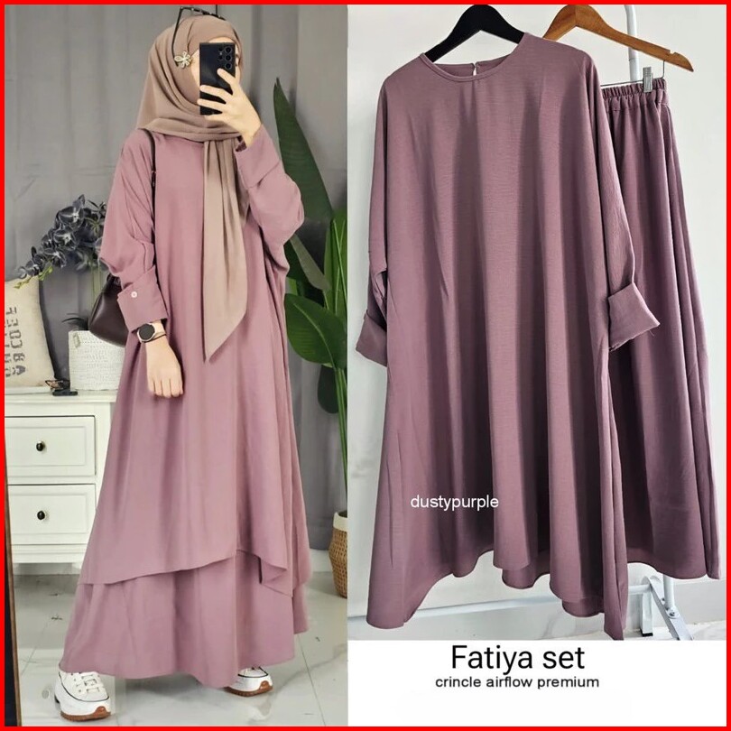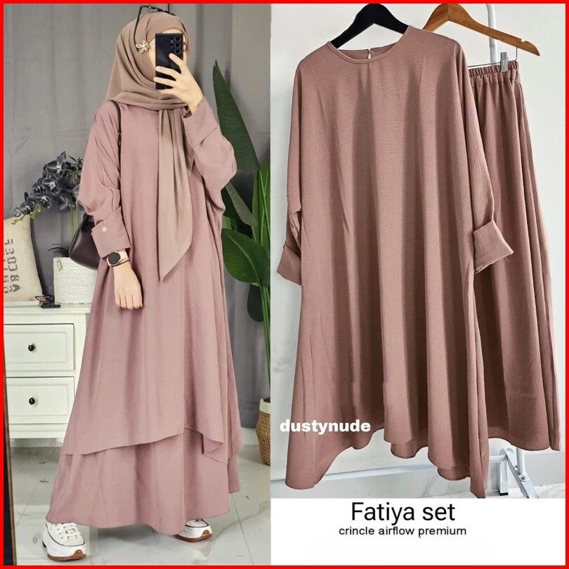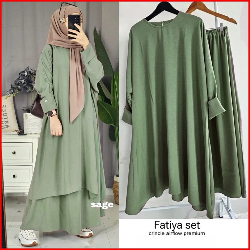 One Set Abaya Fatiya Set Abaya Matt Cringkle Airflow Premium Tunik Rok Jumbo