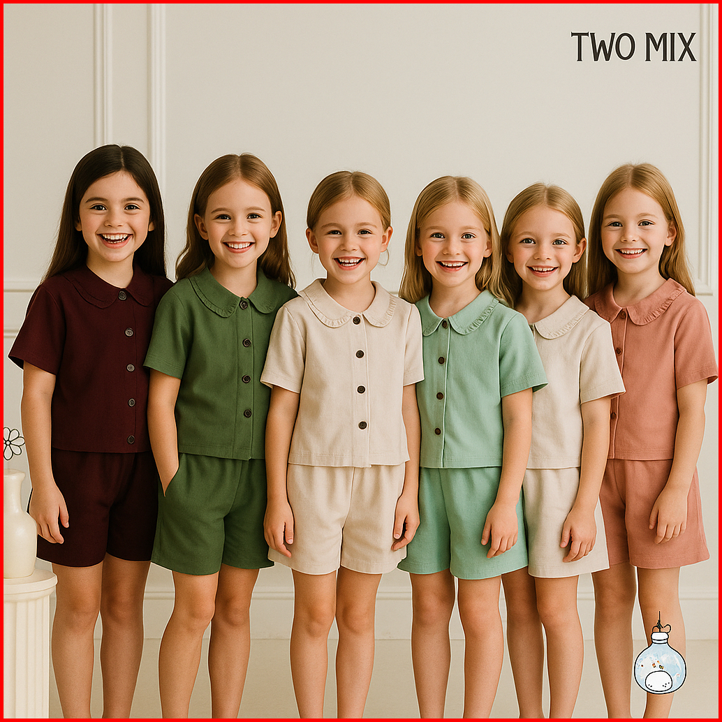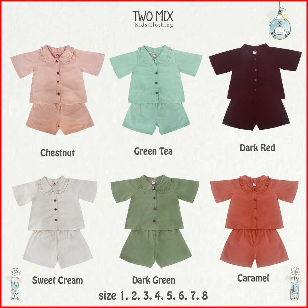 Two Mix - Baju Setelan Anak Perempuan Celana Pendek Lucu - One Set Anak Cewek Usia 1-8 Tahun 4361b