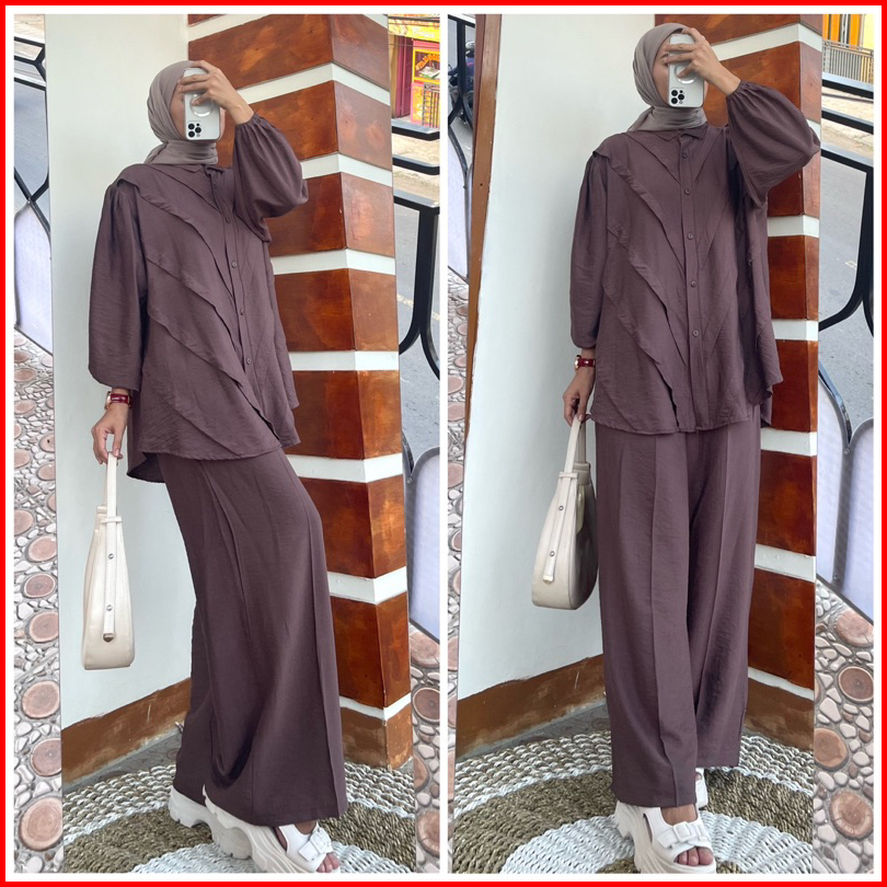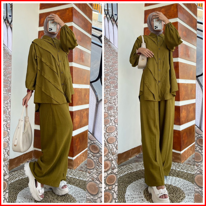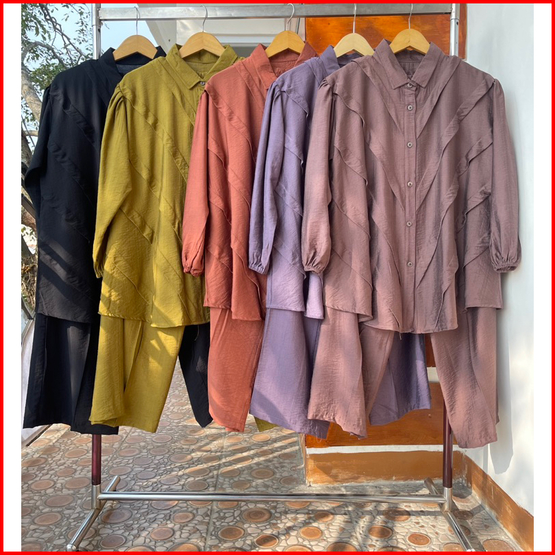 Gladis Setelan Wanita Kameja Oversize Polo Linen