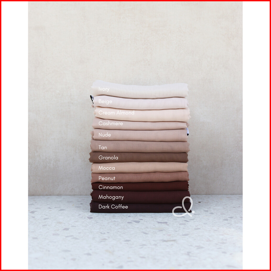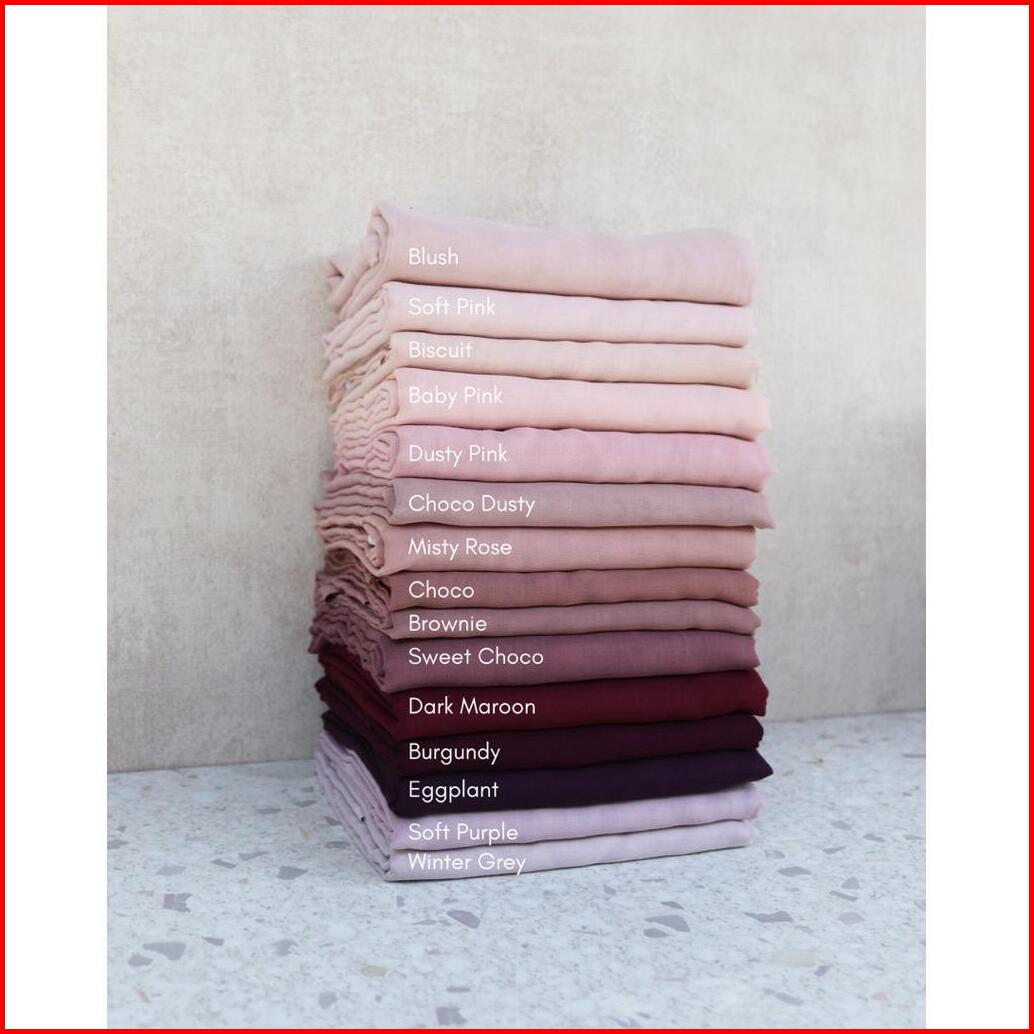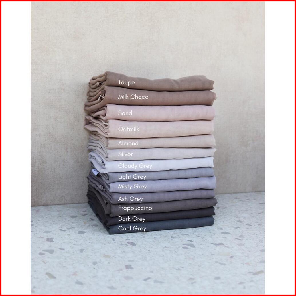 32/24/3 Choco dusty, Ice Blue, Powder blue, Navy, Black, Dark Grey, Frapuchino, Ash grey, Light Grey, Cool grey, Silver, BW (extra soft), Cloud, Milk choco, Almond, Ivory, Beige, Butter cream, Butter, Mocca, Nude, Peanut, Granola, Cream almond, Biscuit, Choco, Brownie, Sweet Choco, Dark maroon, Dusty pink, Blush, Soft purple, Eggplant, Mahogany, Dark coffee, Baby pink, Emerald, White (putih susu), Cinnamon, Misty rose, Soft pink, Taupe, Misty grey, Tan, Cloudy grey, Oatmilk, Winter grey, Sand (extra soft), Burgundy, Cashmere
