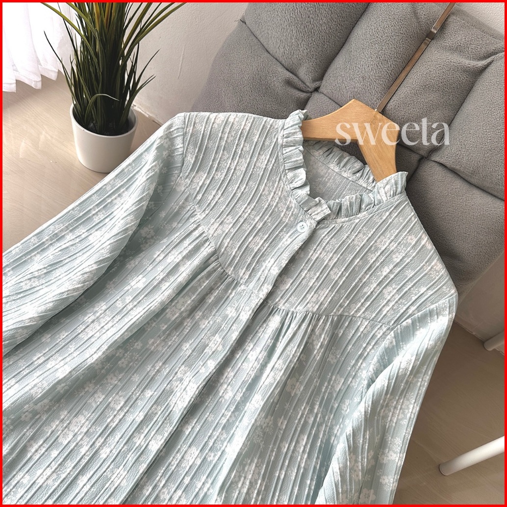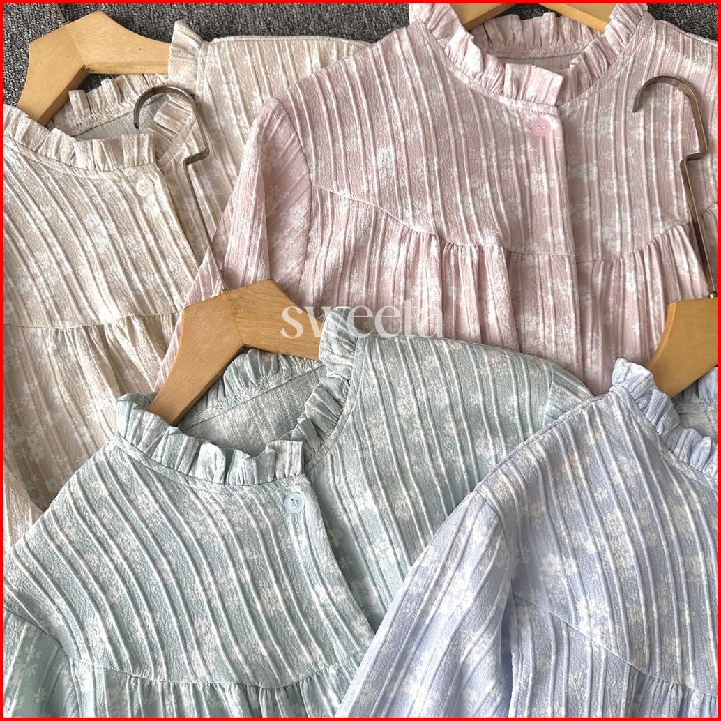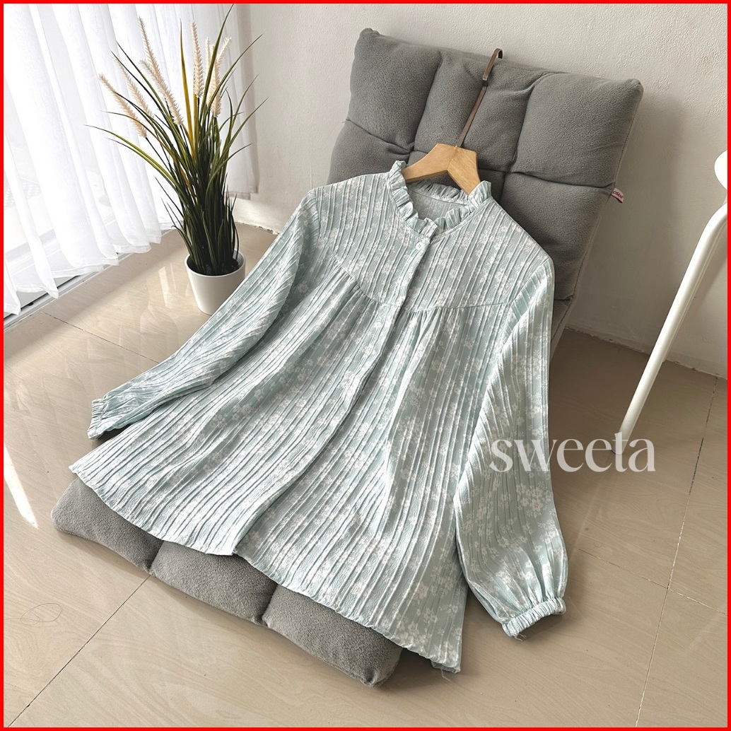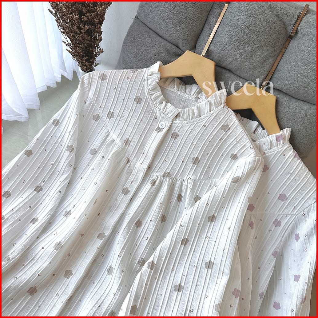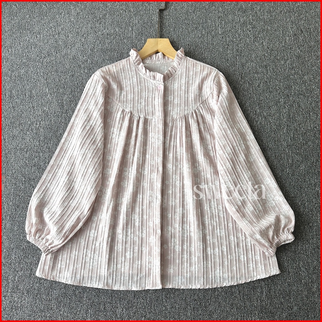 Sweeta Blus U Rample Motif Lavanda Korea Style Ld 115 Cm Kancing Dapat Dibuka Atasan Pakaian Wanita Muslim Tangan Karet