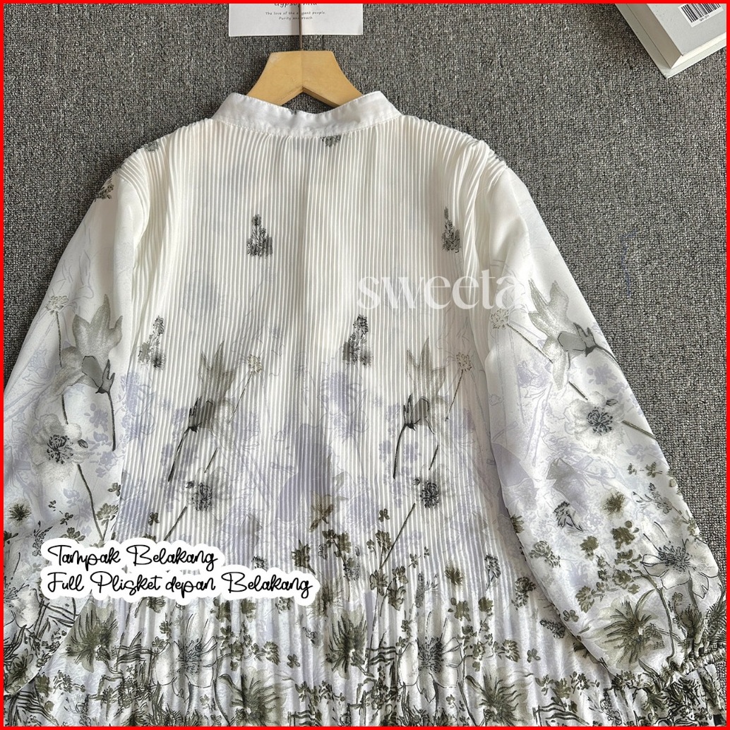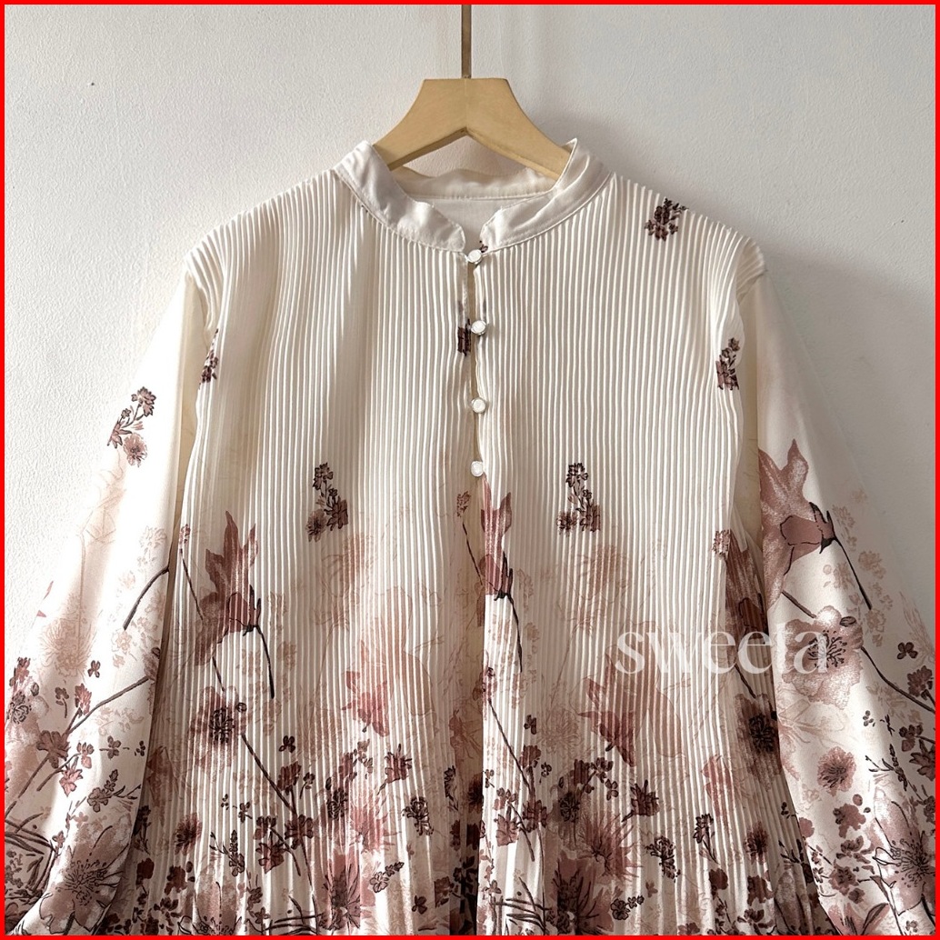 Sweeta Shirt Plisket Motif Floral Ceruty Full Furing Ld 115cm Oversize Korea Style Double Layer Atasan Pakaian Wanita