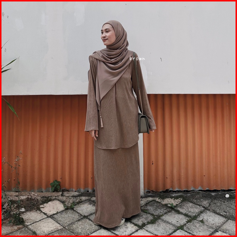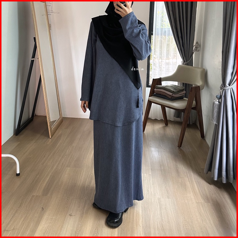 Saila Knit Set Malaysian Tunik Dan Rok Hijab Shafiyya Hi.shafiyya