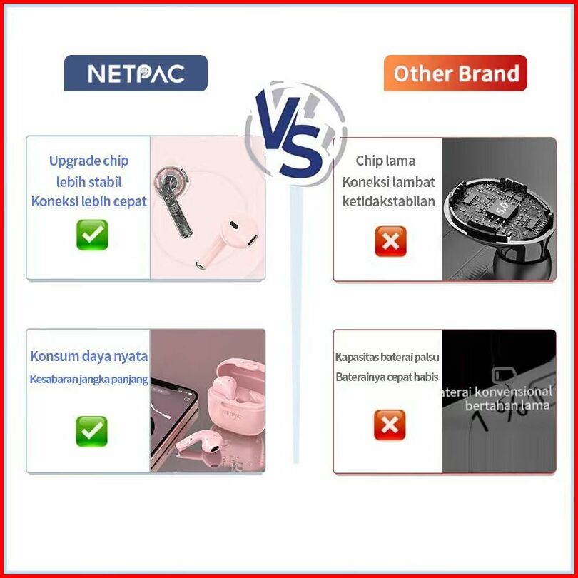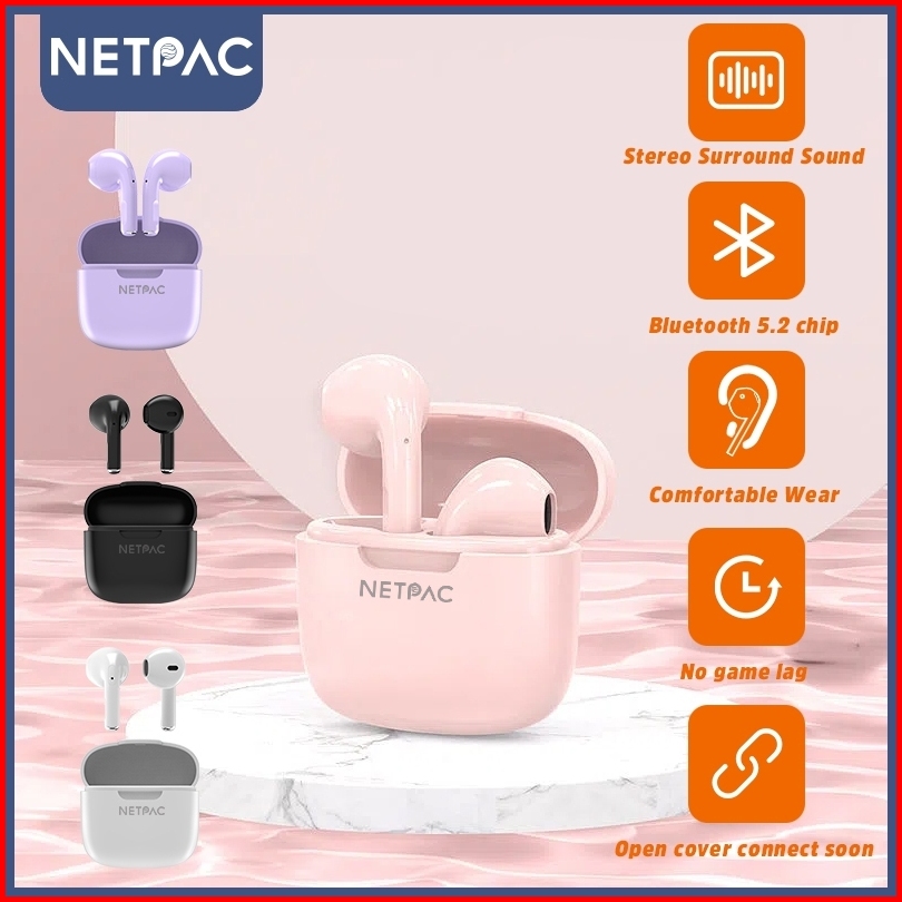 Netpac Tws Headset Bluetooth Wireless Earphone Full Bass Mini Earbuds Stereo Hifi Noise Cancelling Hedset Waterproof Blu