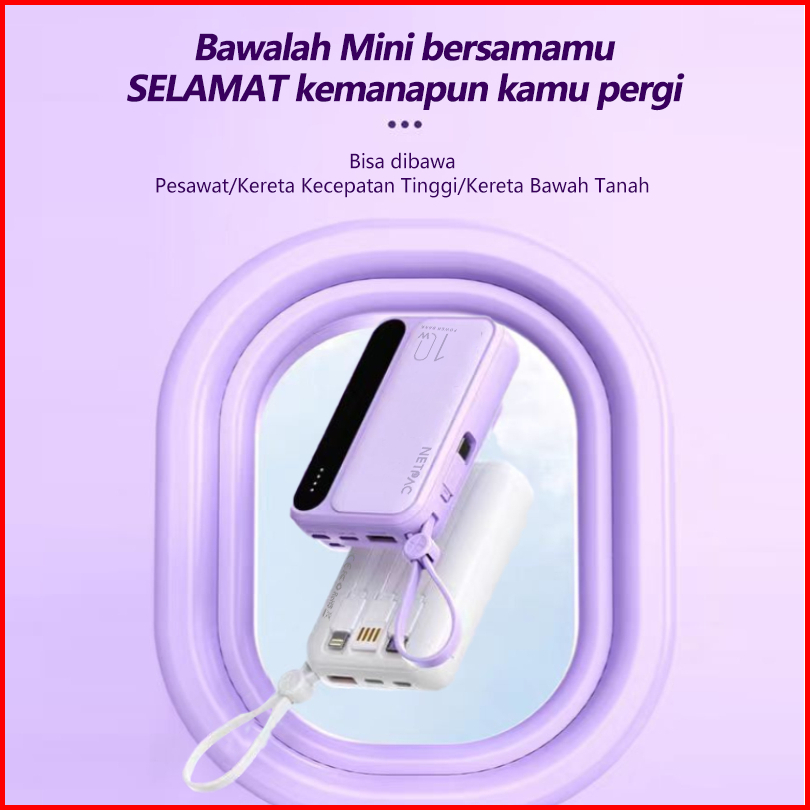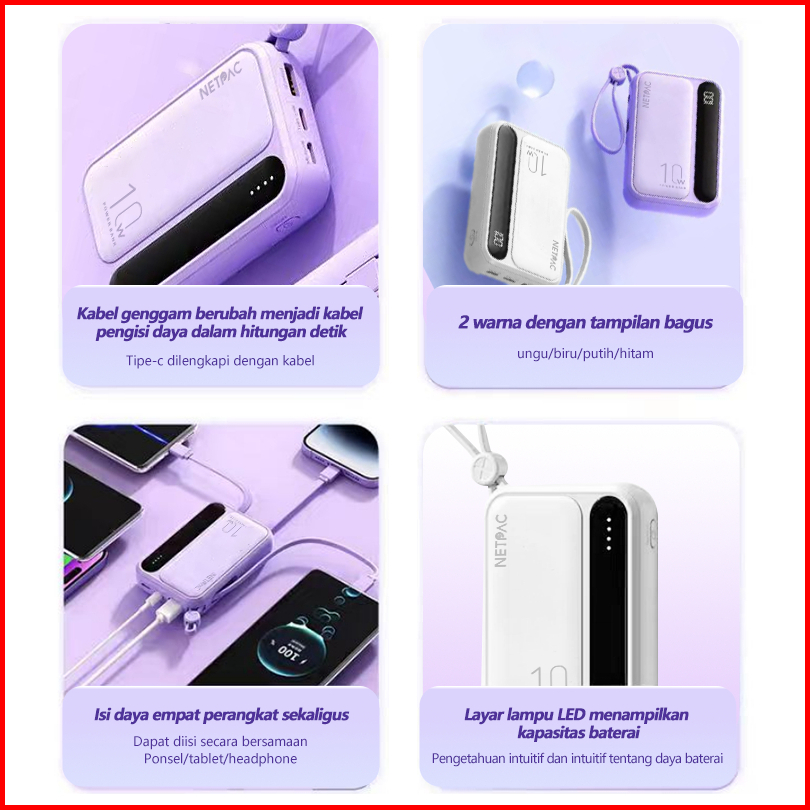 Netpac Powerbank 10000mah Fast Charging Murah Mini Lightweight Lcd With 4 Kable Data