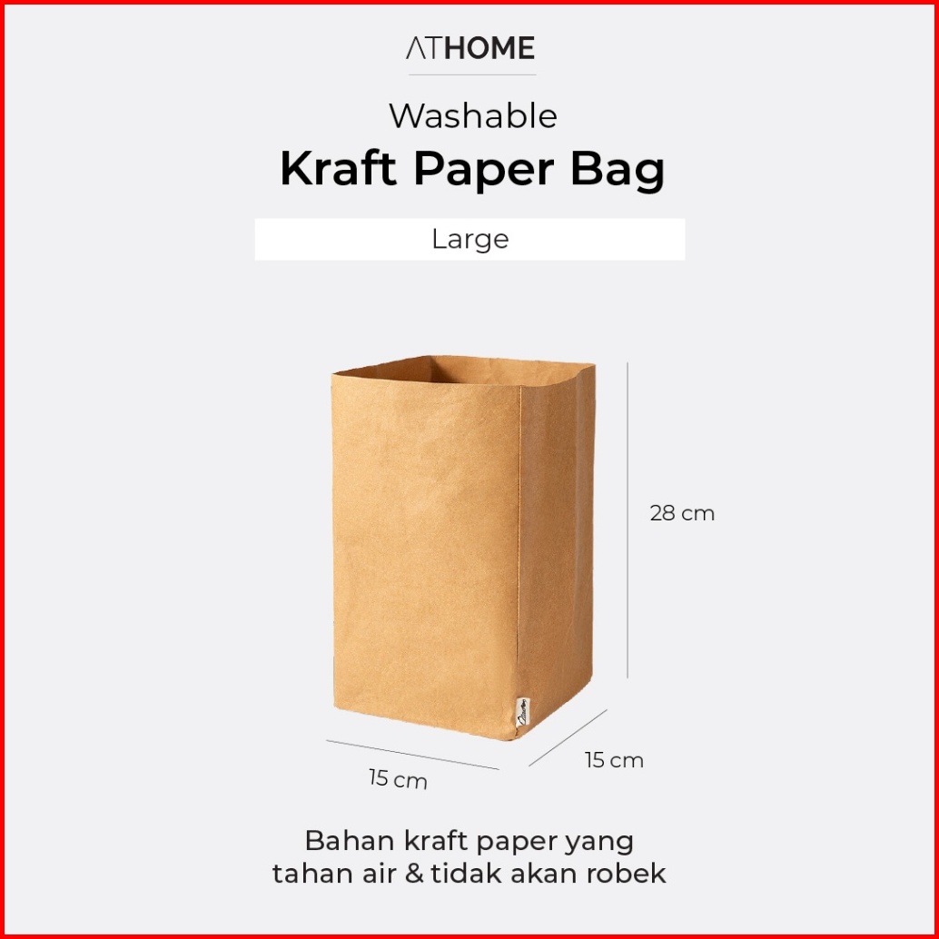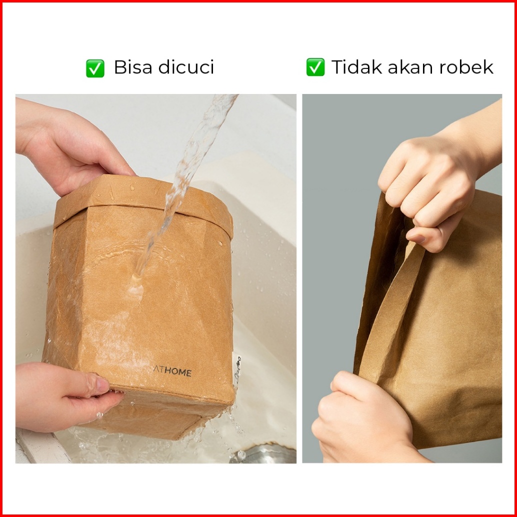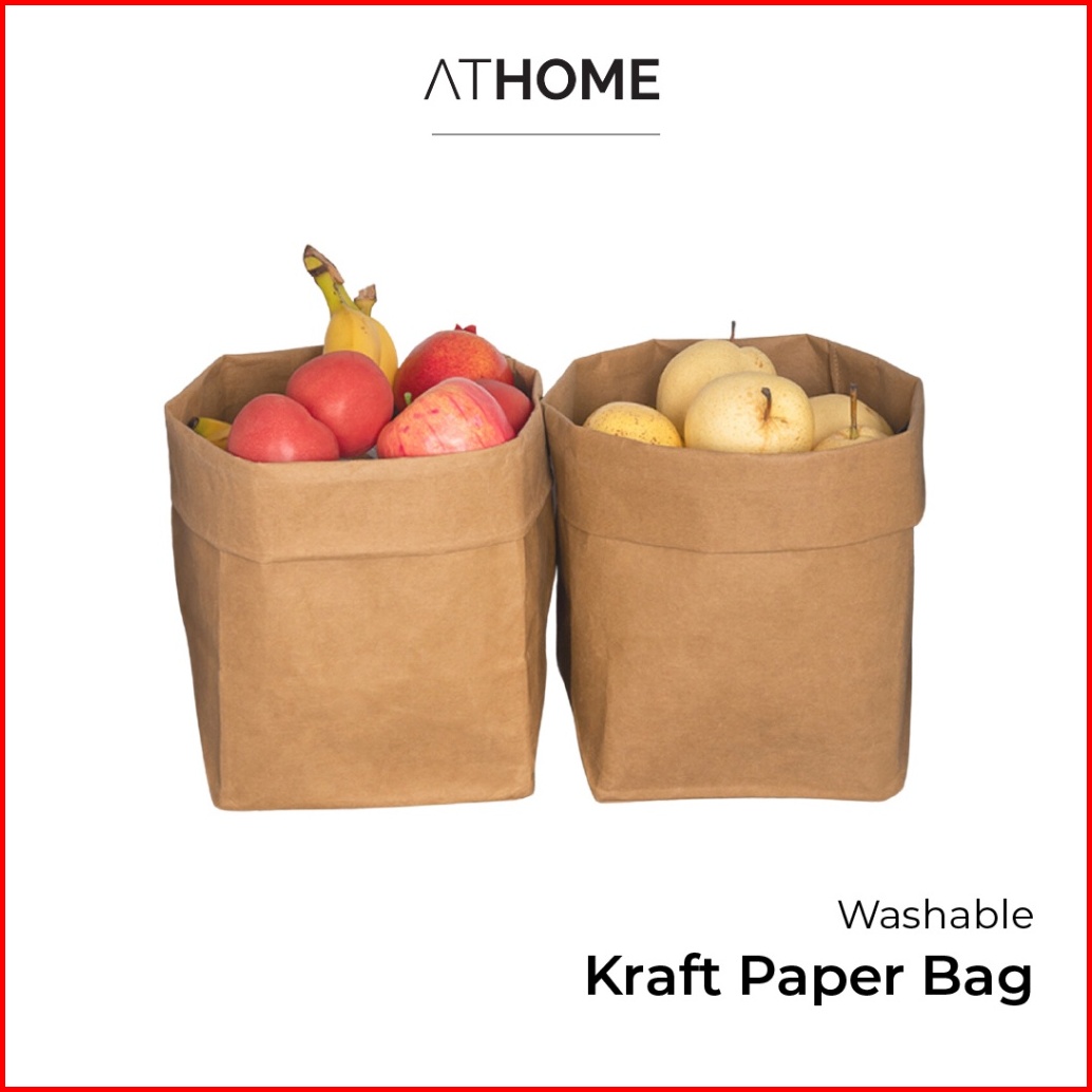 Athome Washable Kraft Paper Bag Tempat Penyimpanan Serbaguna Makanan Kulkas Buah Sayur Bawang Tanaman Kosmetik Tahan Air