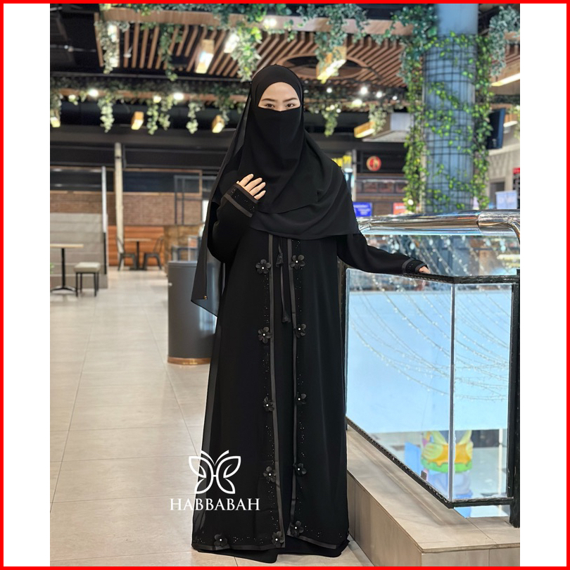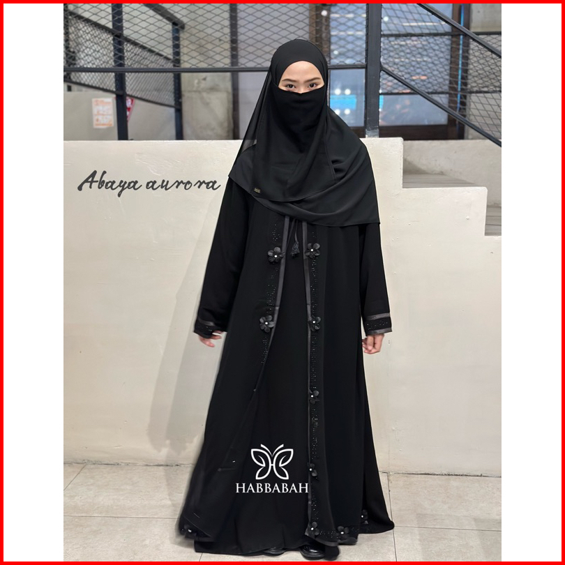 Abaya Aurora Hitam Premium Gamis Outer Elegan Syari Masturoh Adem Temboro