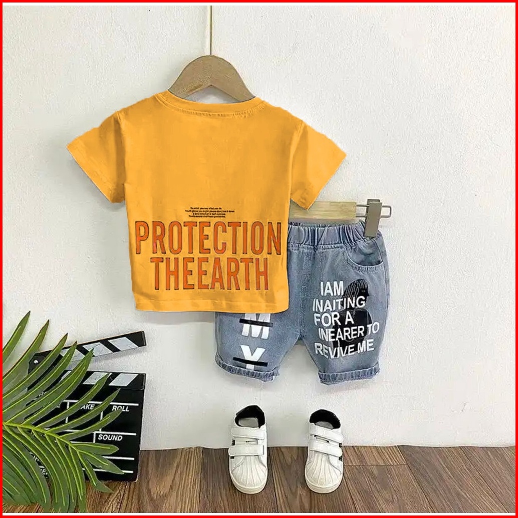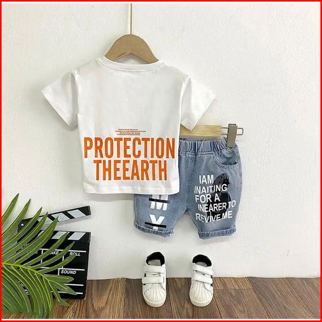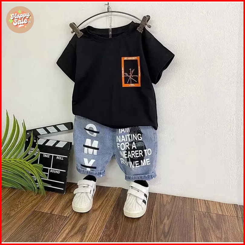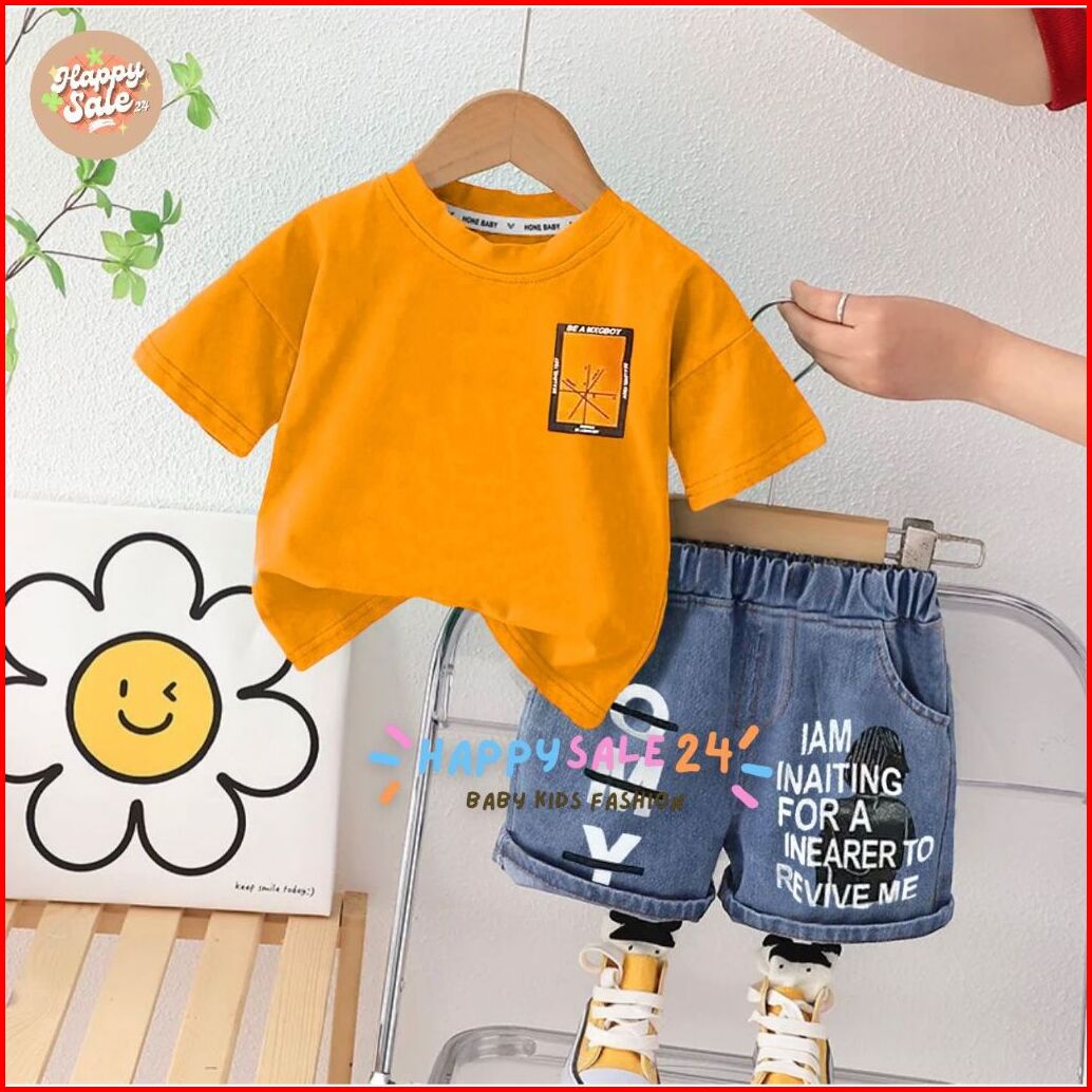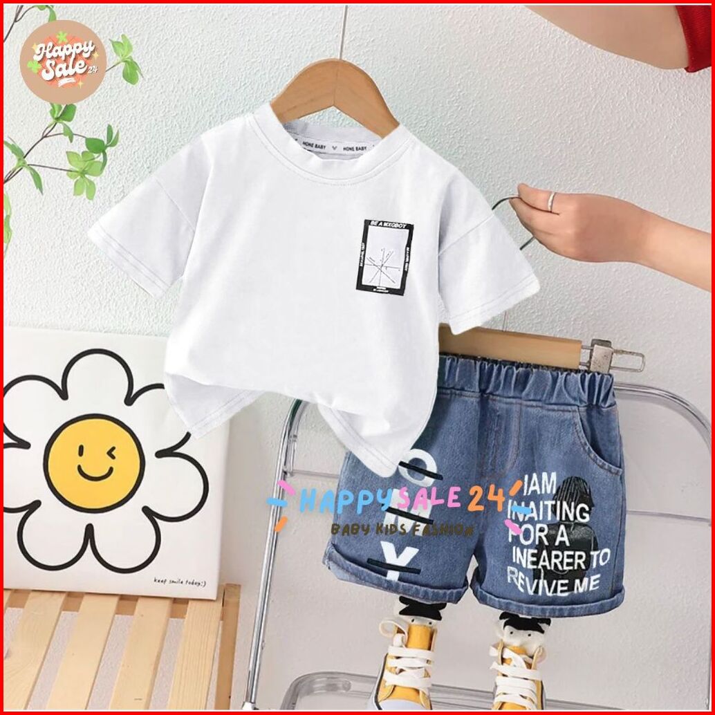Setelan Jeans Pendek Kaos Anak Laki-laki Kekinian Celana Jeans Pendek Usia 1-5 Tahun Setelan Anak Laki Laki Baju Dan Cel