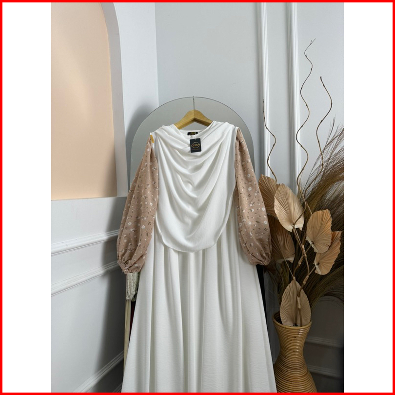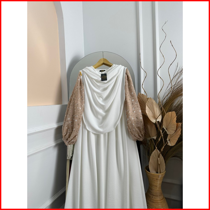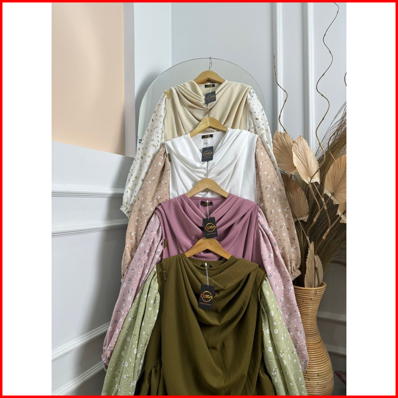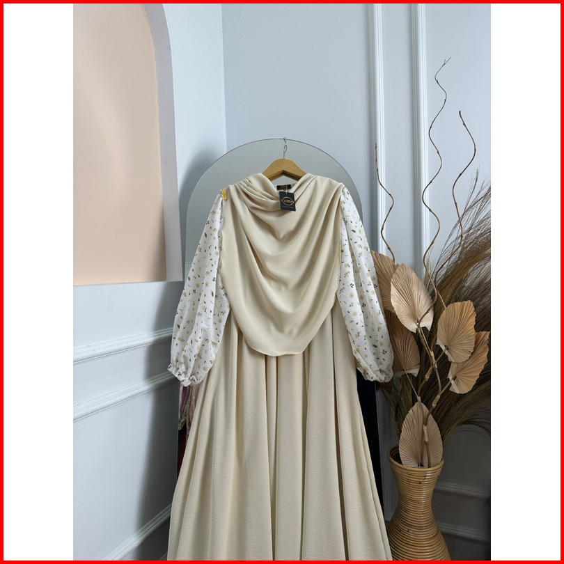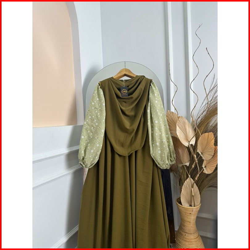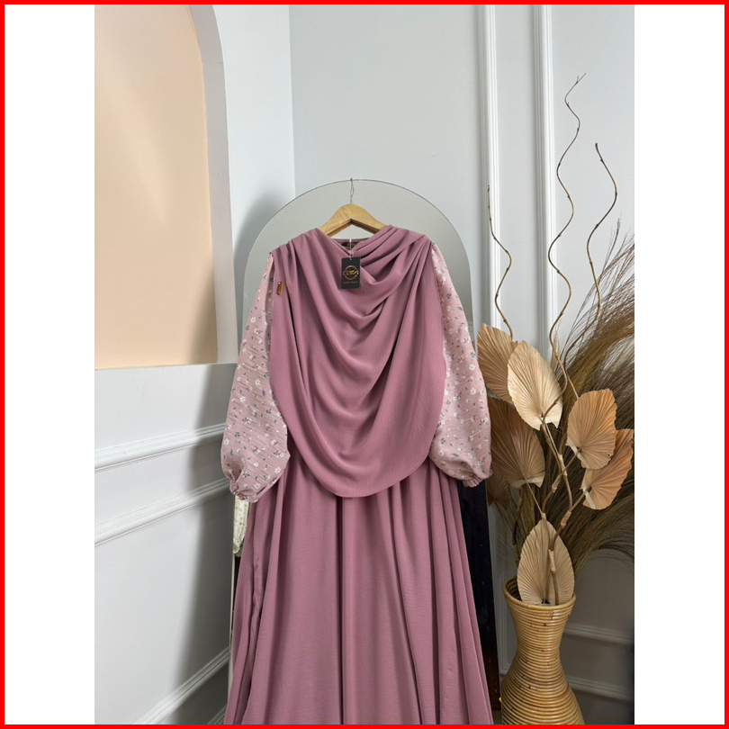 Dfm - Clemira Set Motip Syari Pasmina Oval Gamis Syari Wanita Bahan Crinkle Airflow