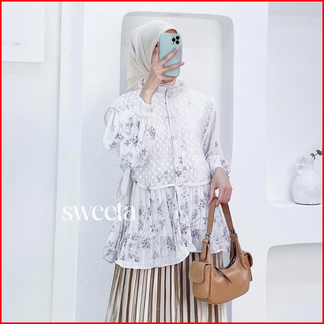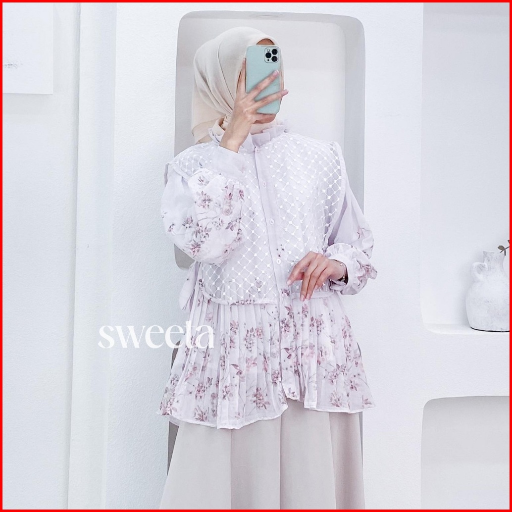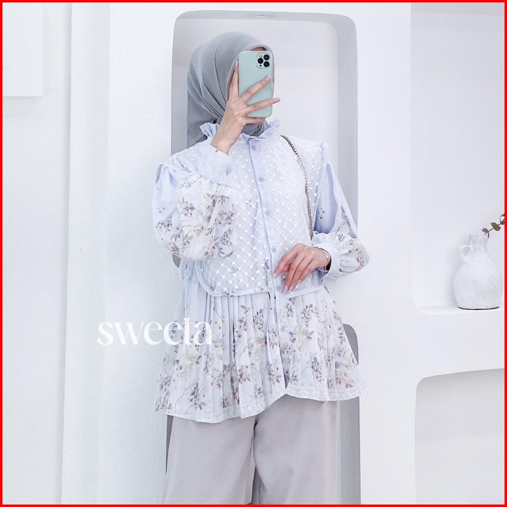 Sweeta Blouse Plisket Mix Vest Tille Ceruty Full Furing Ld 115cm Korea Style Atasan Wanita