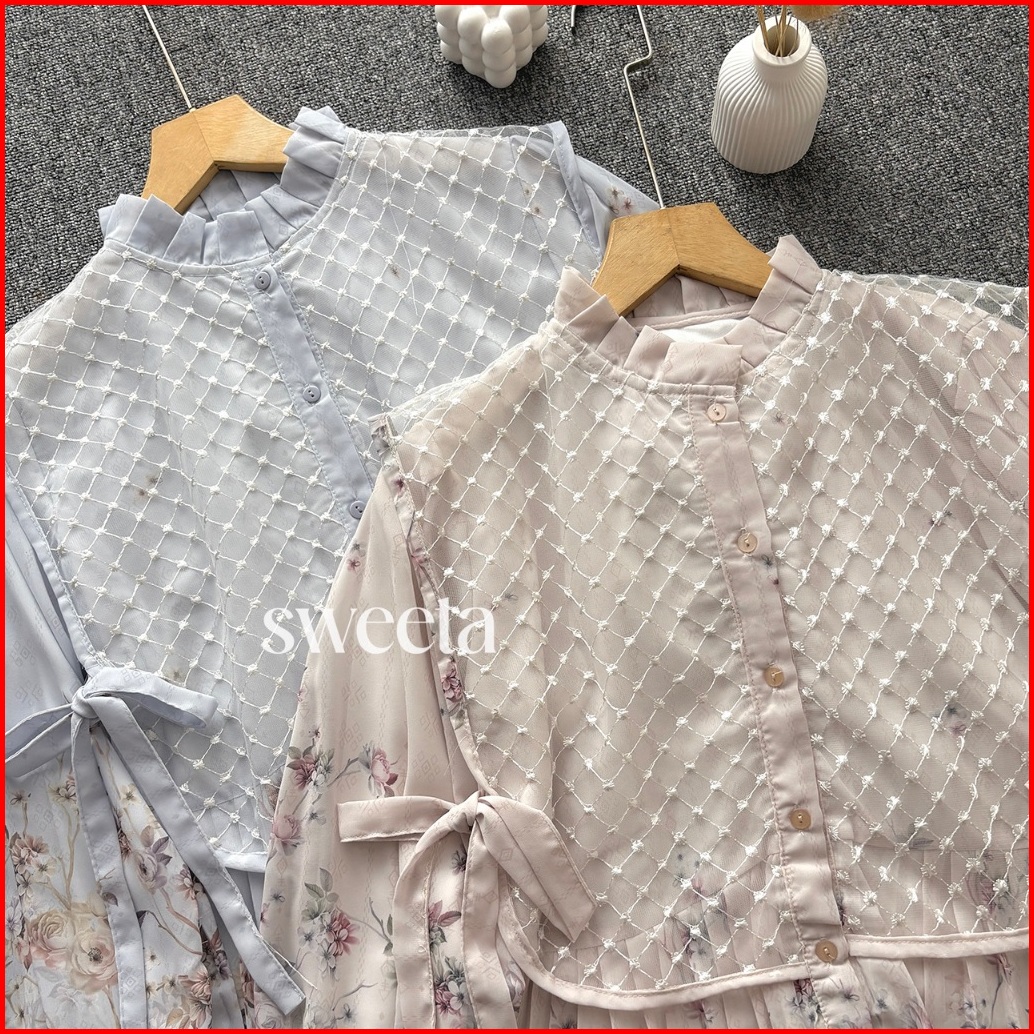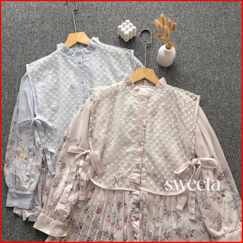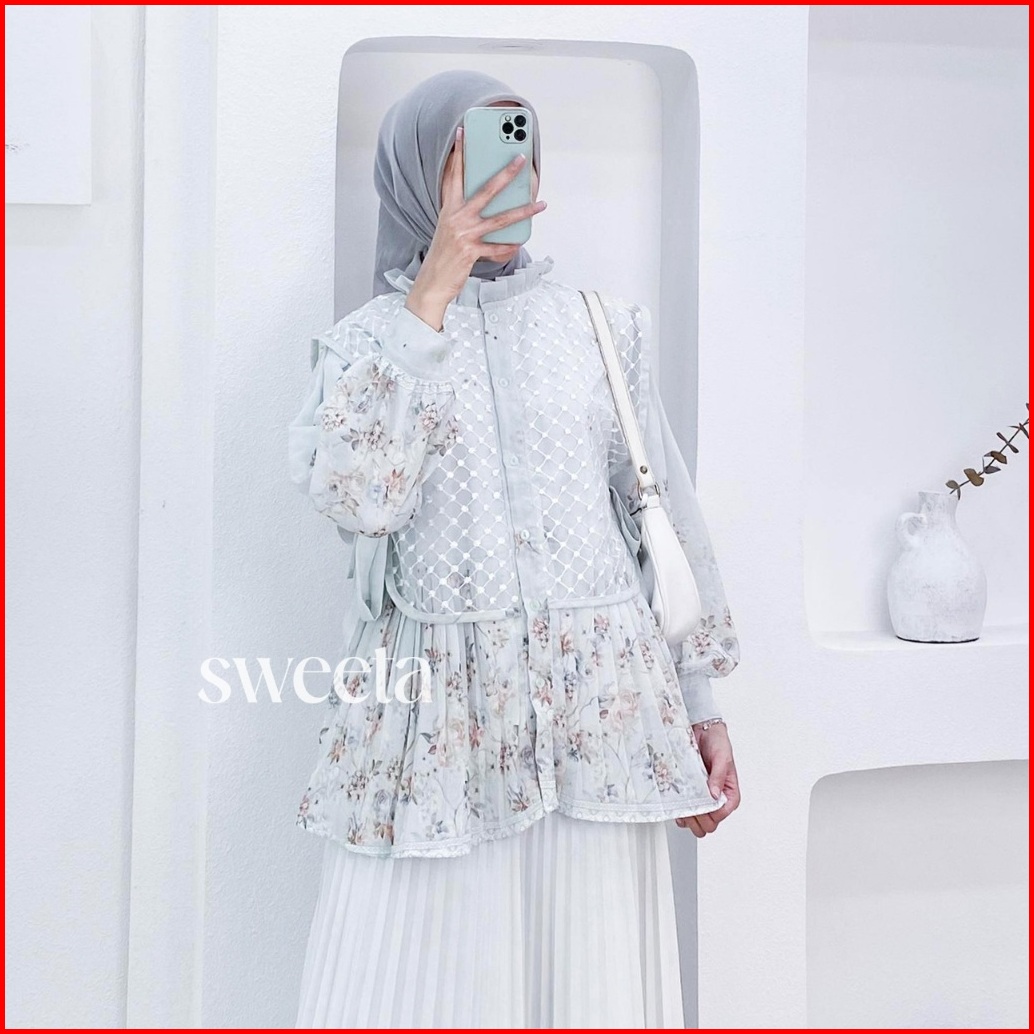 Sweeta Blouse Plisket Mix Vest Tille Ceruty Full Furing Ld 115cm Korea Style Atasan Wanita