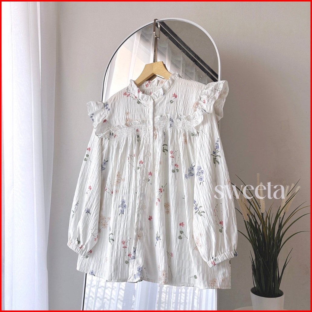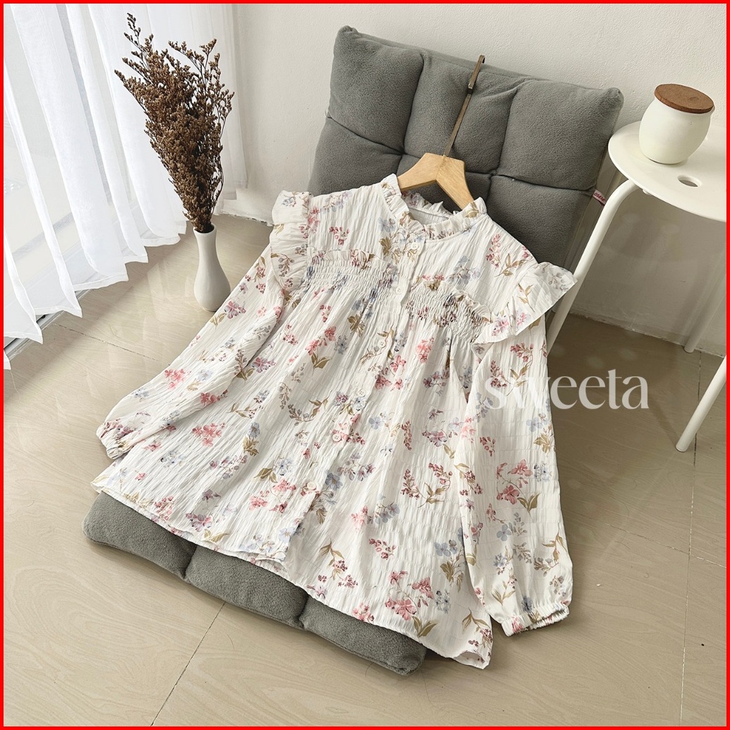 Sweeta Blus Rample Motif Crinkle Airflow Korea Style Ld 110 Cm Atasan Pakaian Wanita