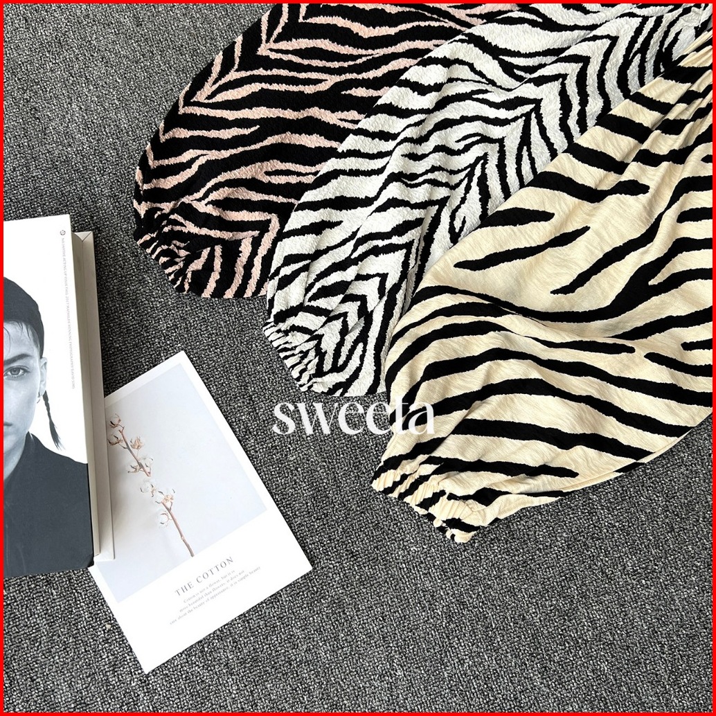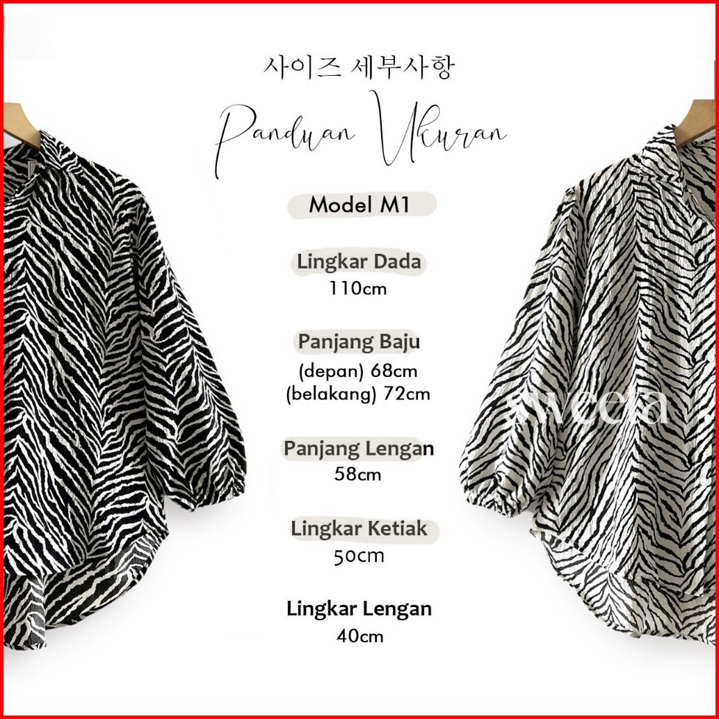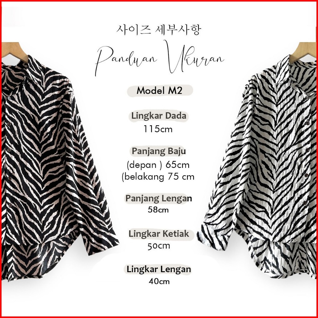 Sweeta Safari Shirt Penguin Motif Zebra Crinkle Airflow Ld 110cm Korea Style Oversize Kemeja Kancing Aktif Atasan Pakaia