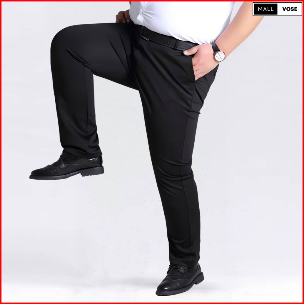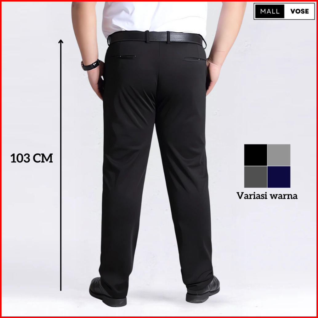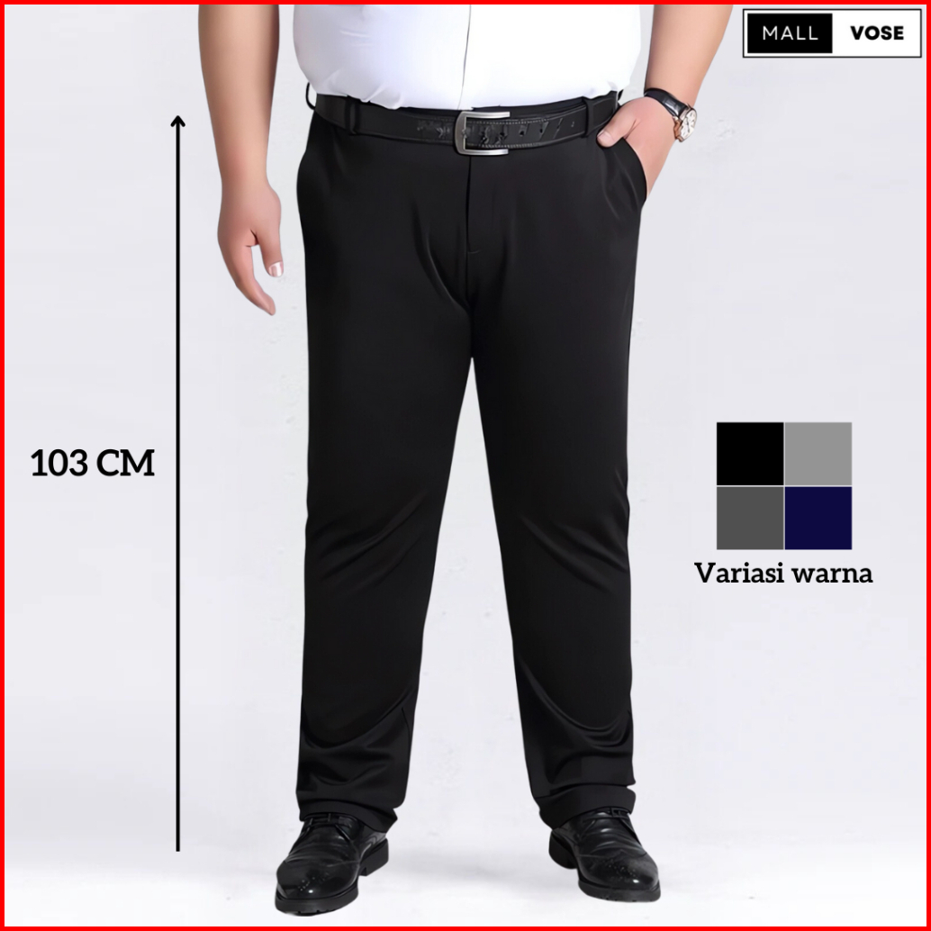 Mallvose - Celana Formal Pria Jumbo Black Slimfit Panjang 103cm Premium