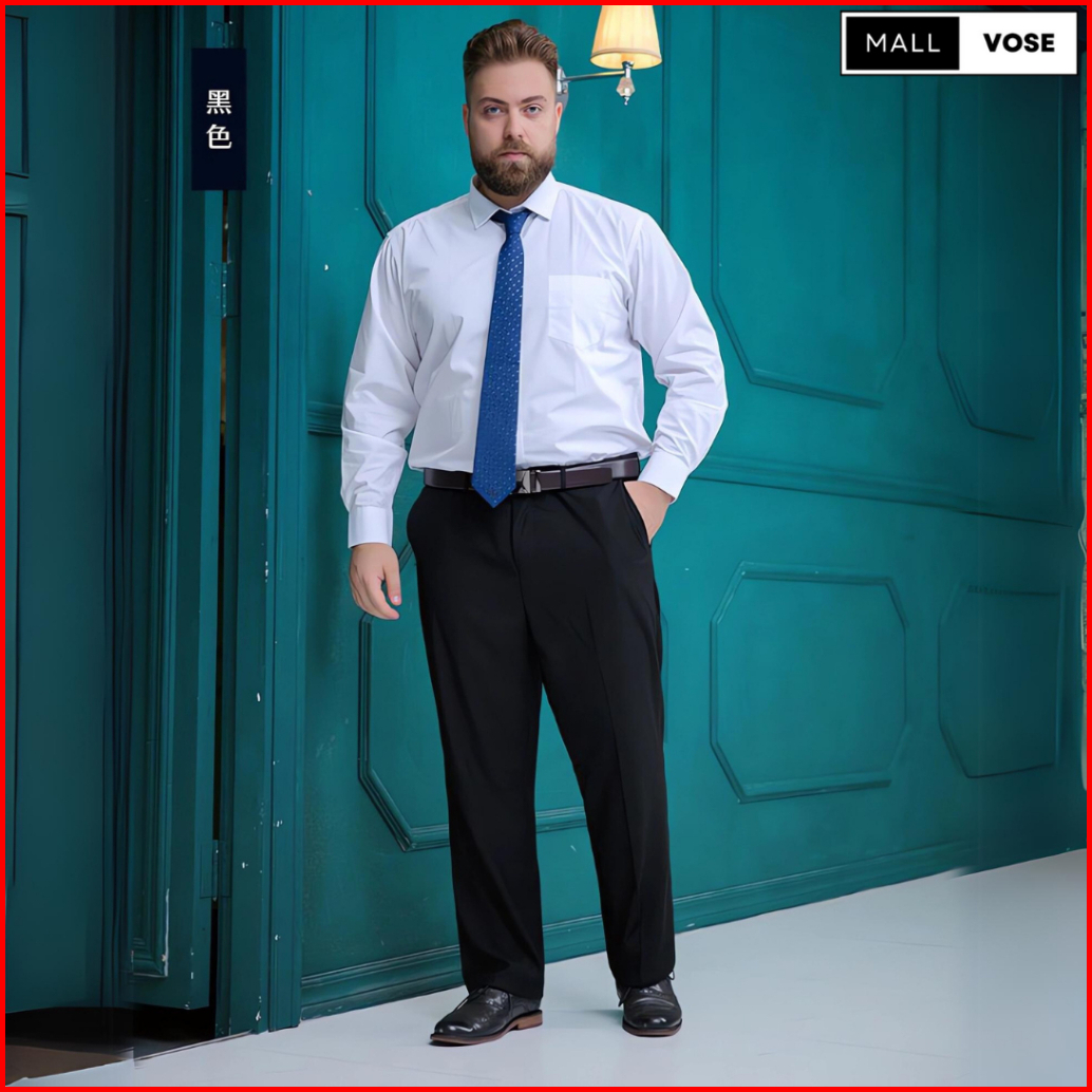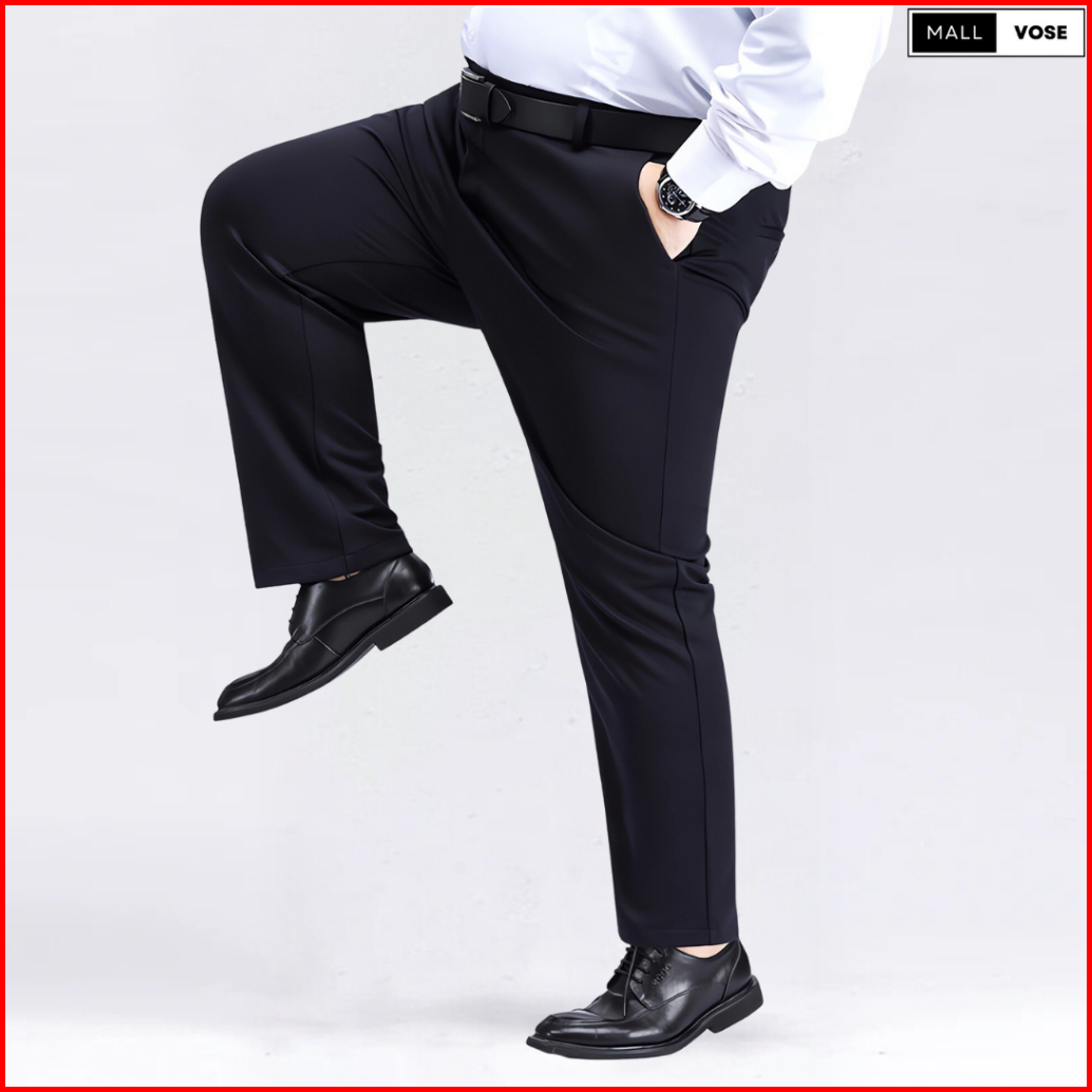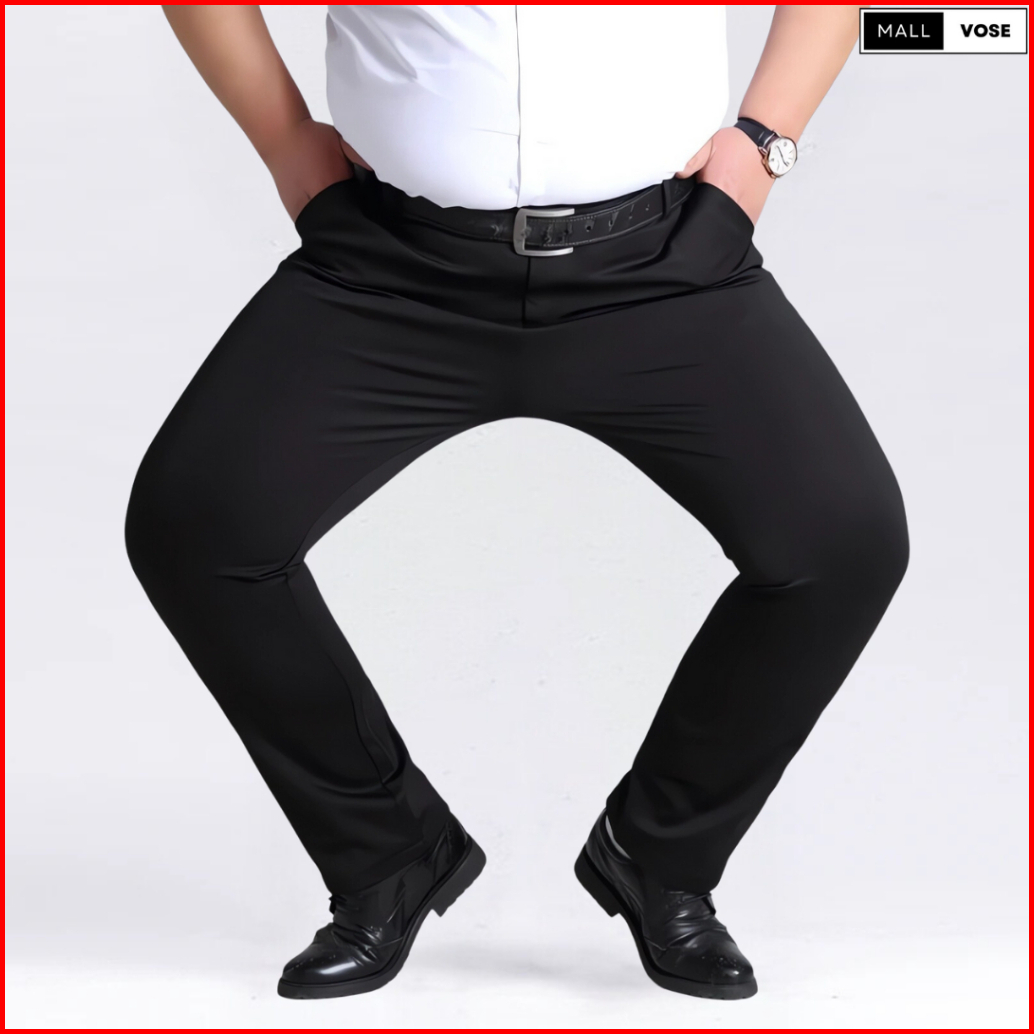 Mallvose - Celana Formal Pria Jumbo Black Slimfit Panjang 103cm Premium