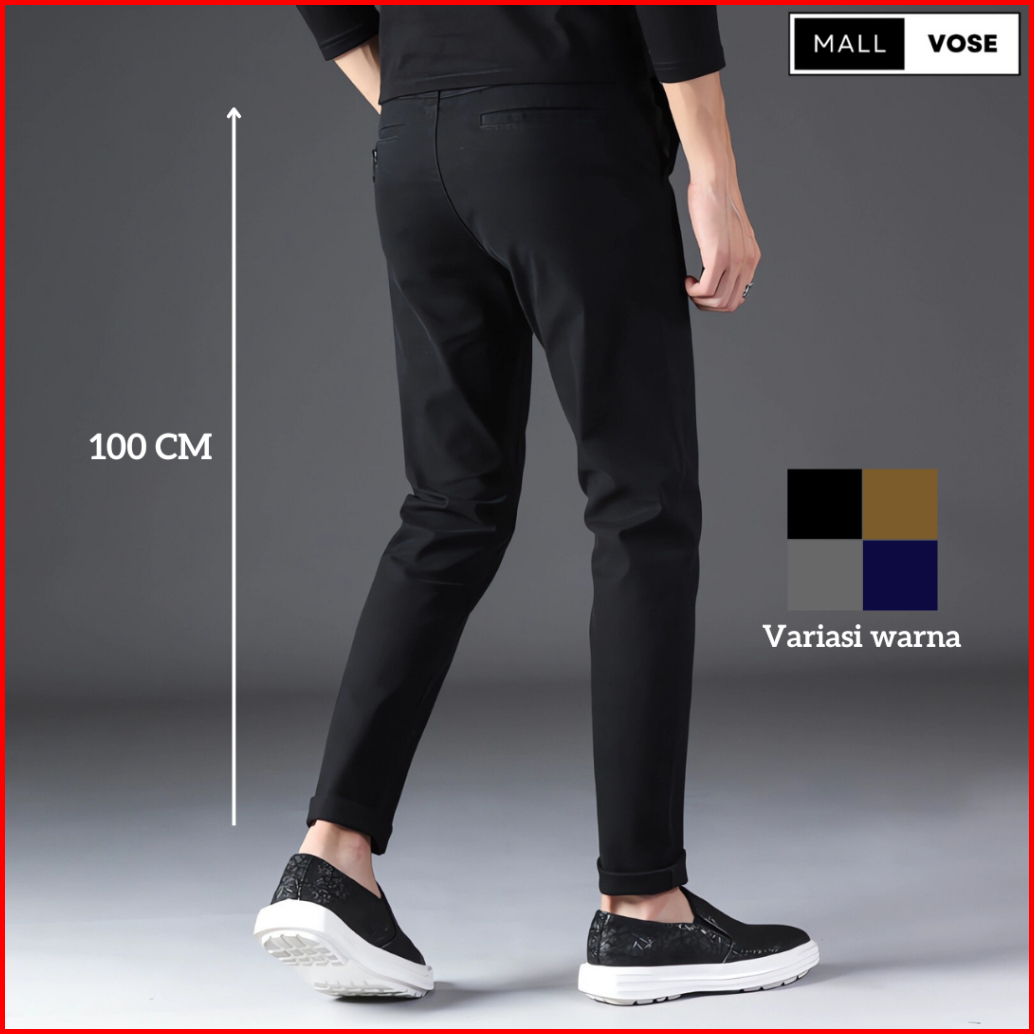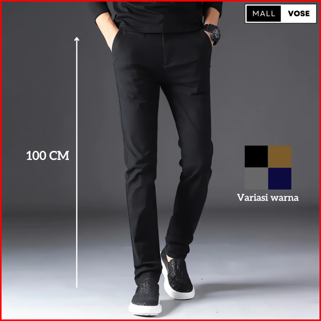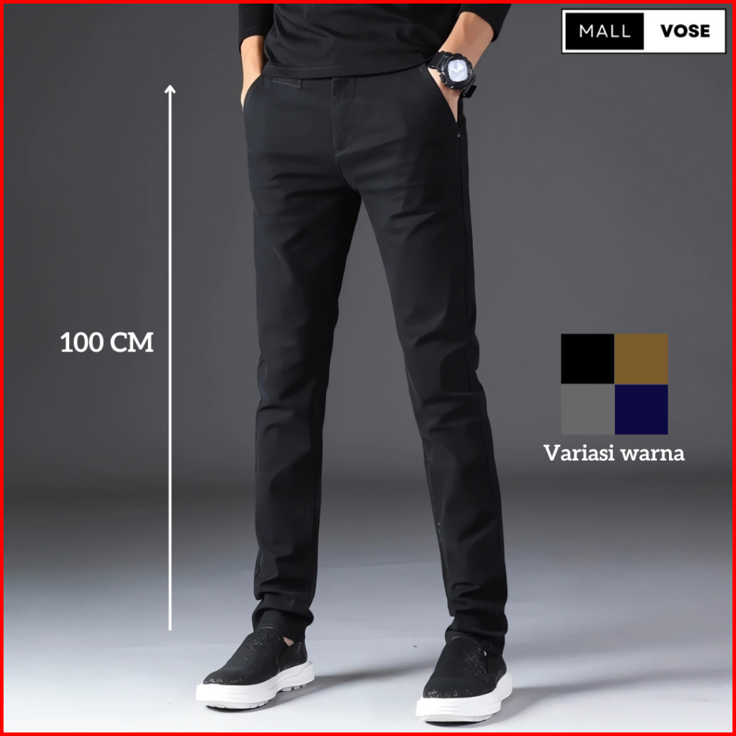 Mallvose - Celana Pria Chino Premium Panjang 100cm Black Slimfit