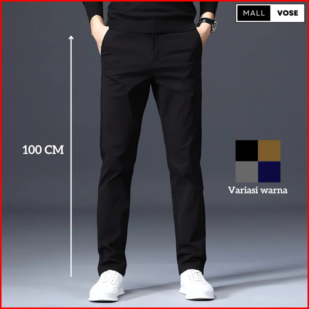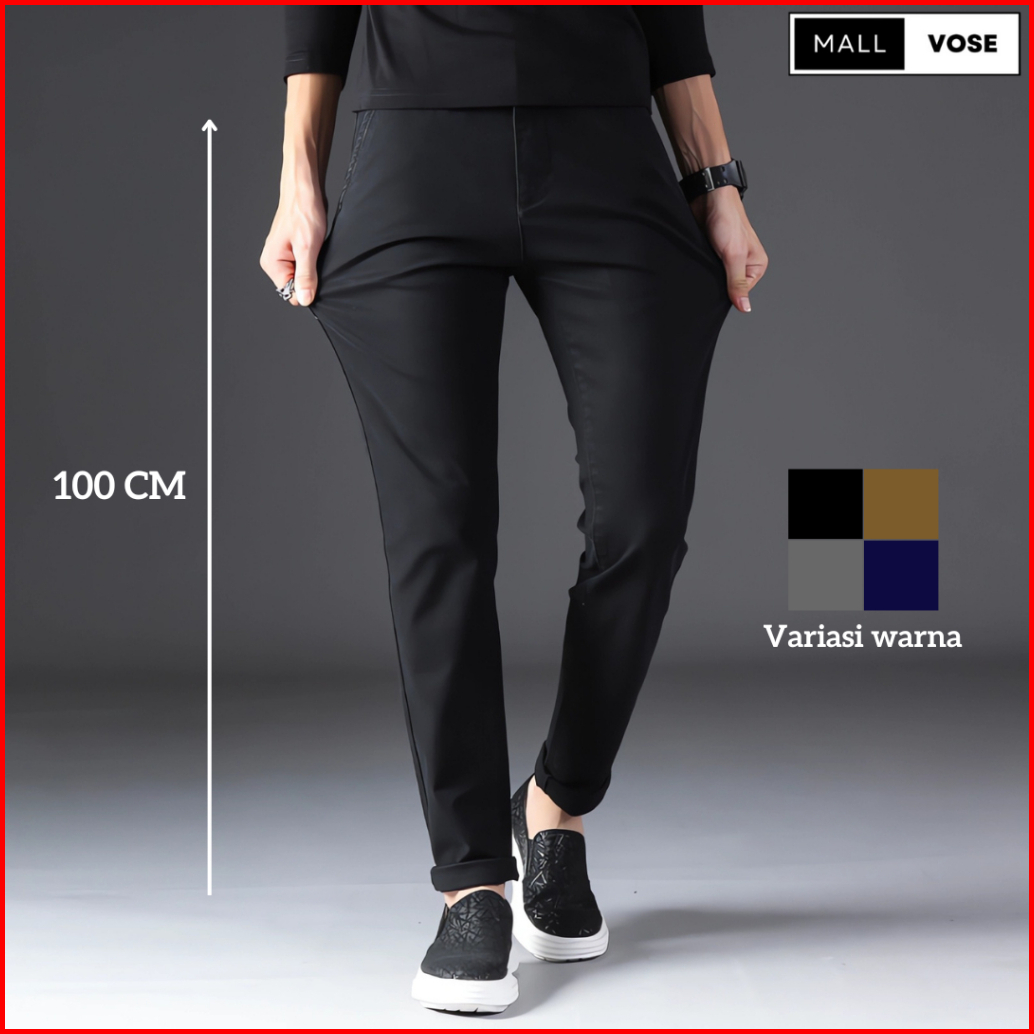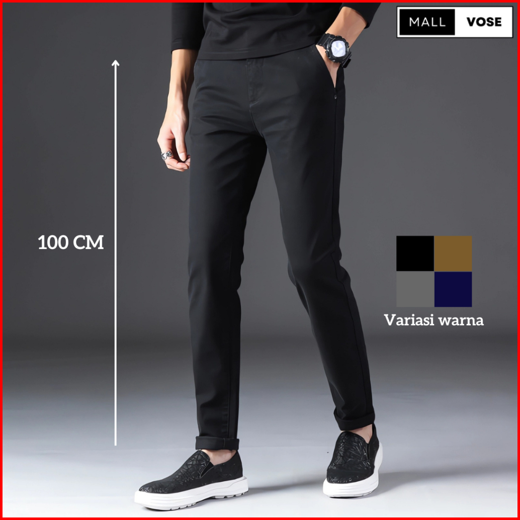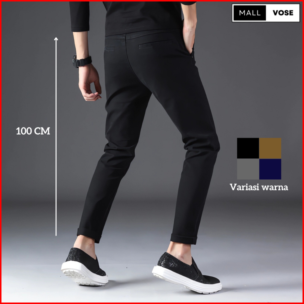 Mallvose - Celana Pria Chino Premium Panjang 100cm Black Slimfit