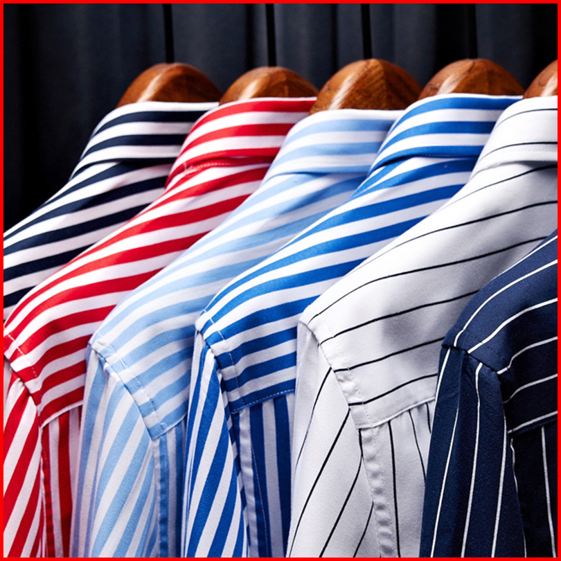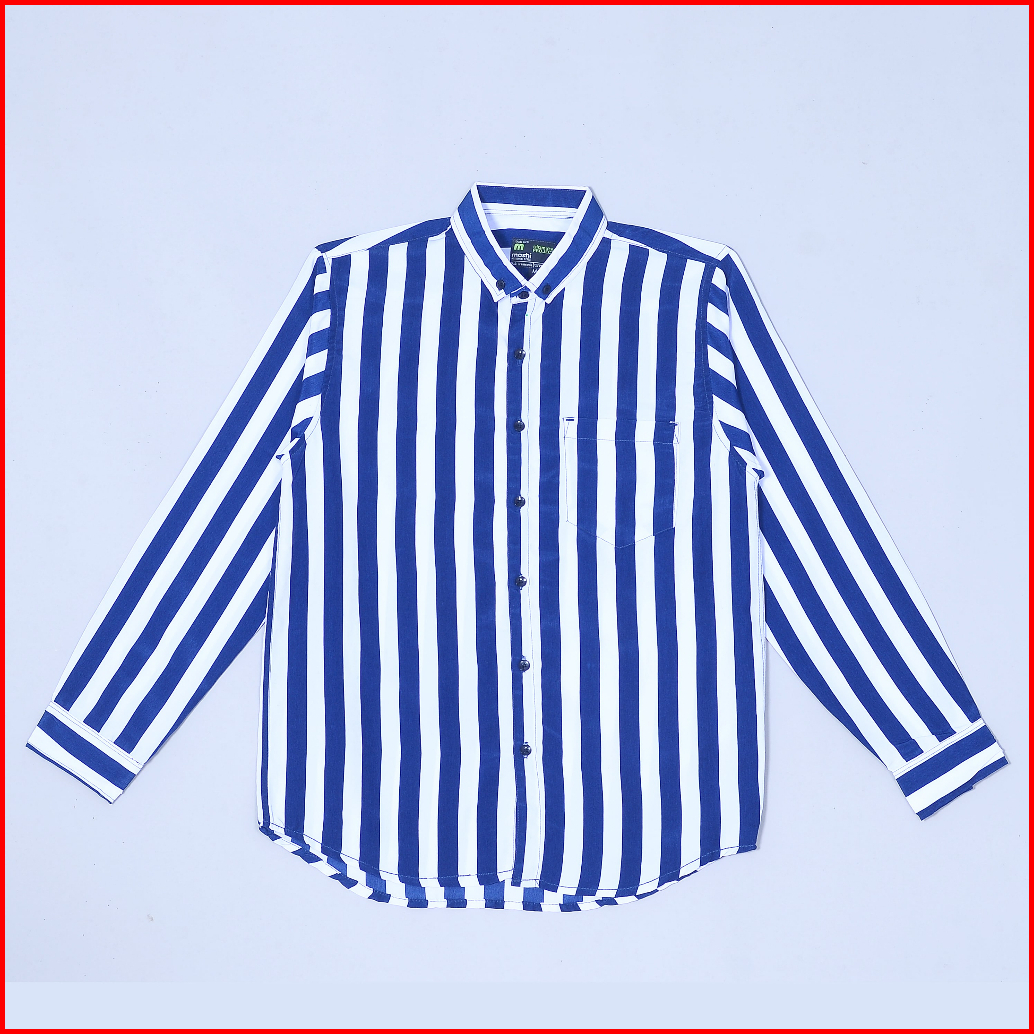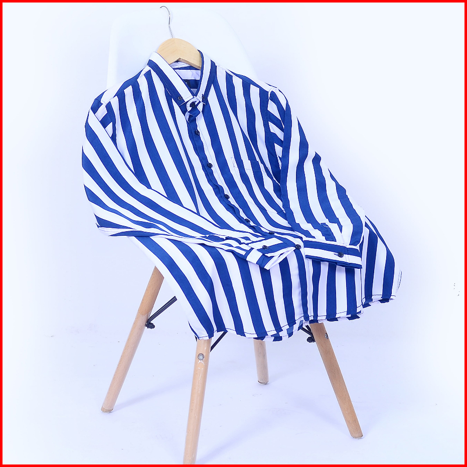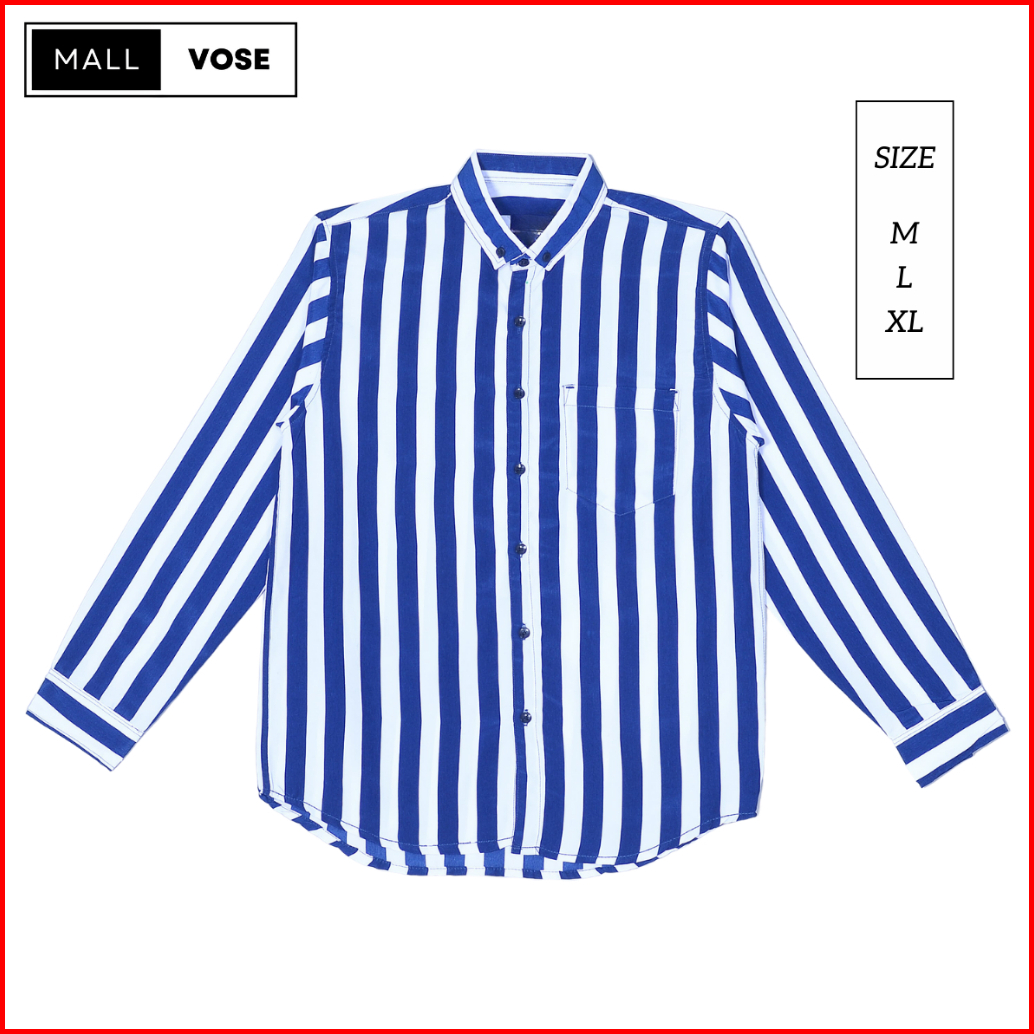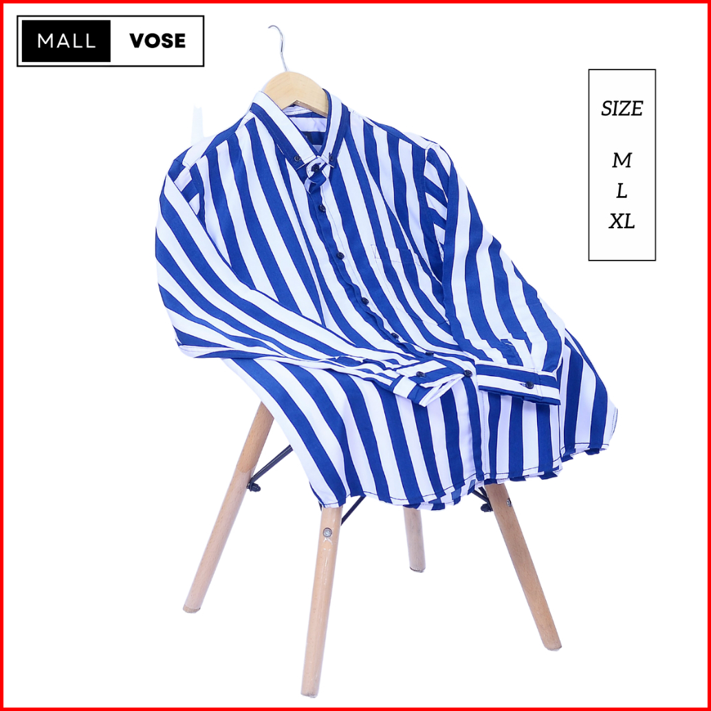 Mallvose - Kemeja Pria Salur Lengan Panjang Strip Biru M L Xl