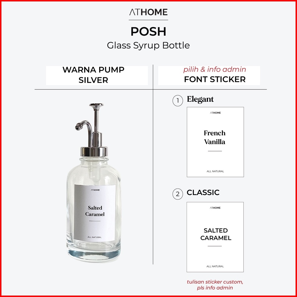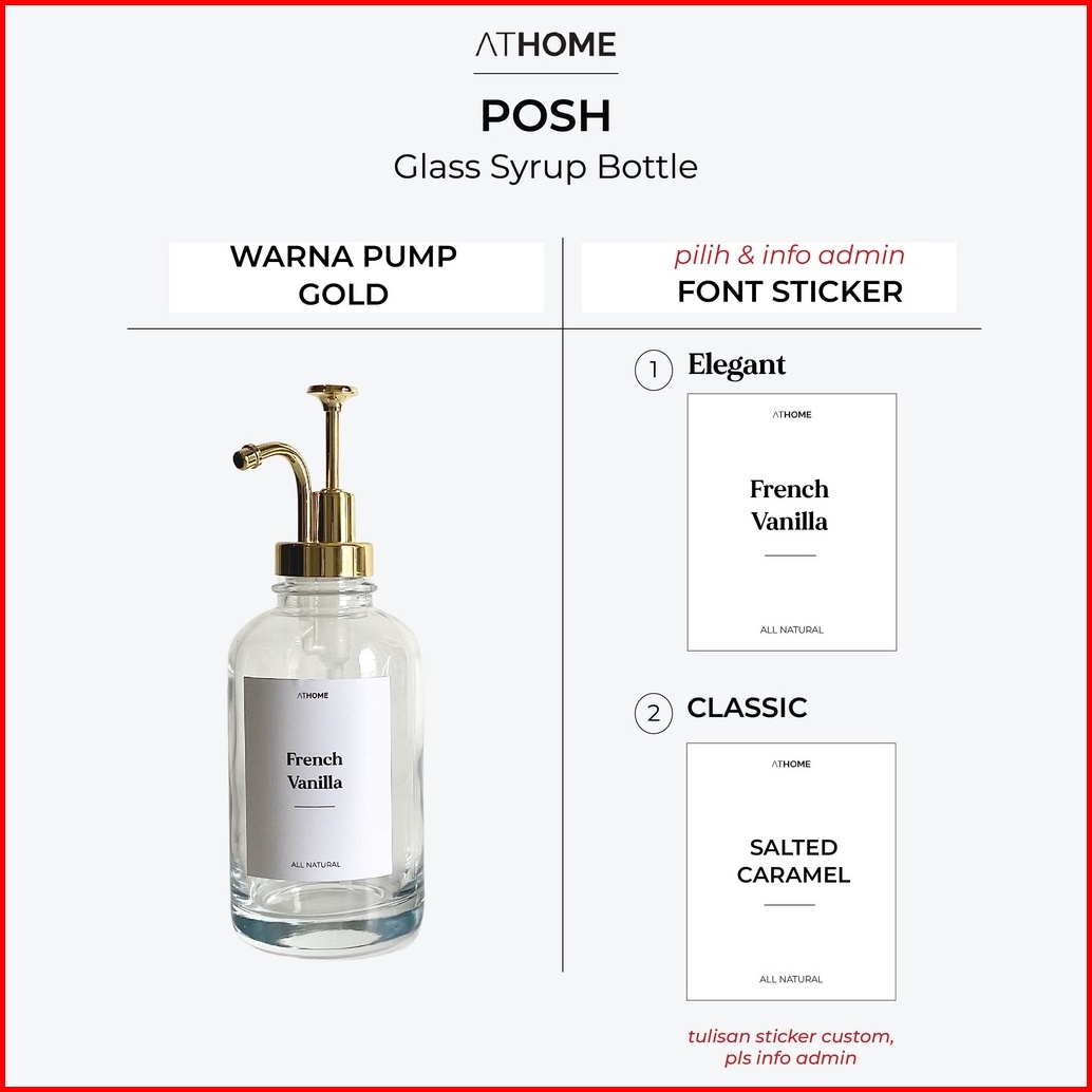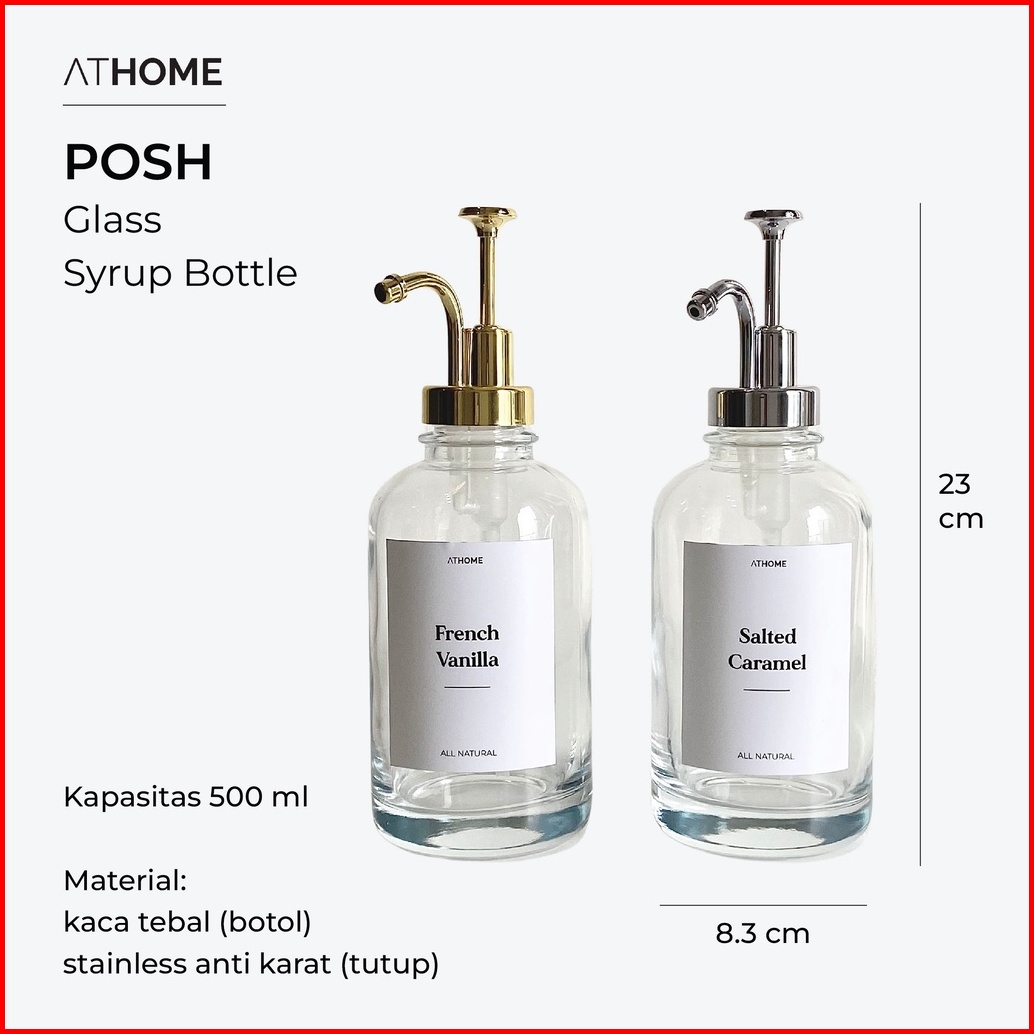 Athome Posh Glass Syrup Bottle 500ml Botol Sirup Sabun Kaca Cafe Cofee Station
