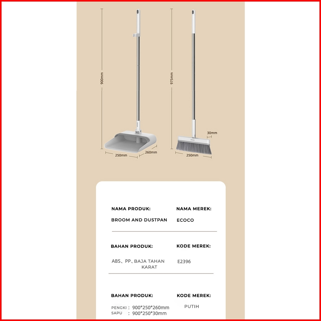 Ecoco Simple Broom - Sapu Lantai Sapu Pembersih Rambut Sapu Lantai Dalam Ruangan Indoor Alat Pembersih Serbaguna Broom I