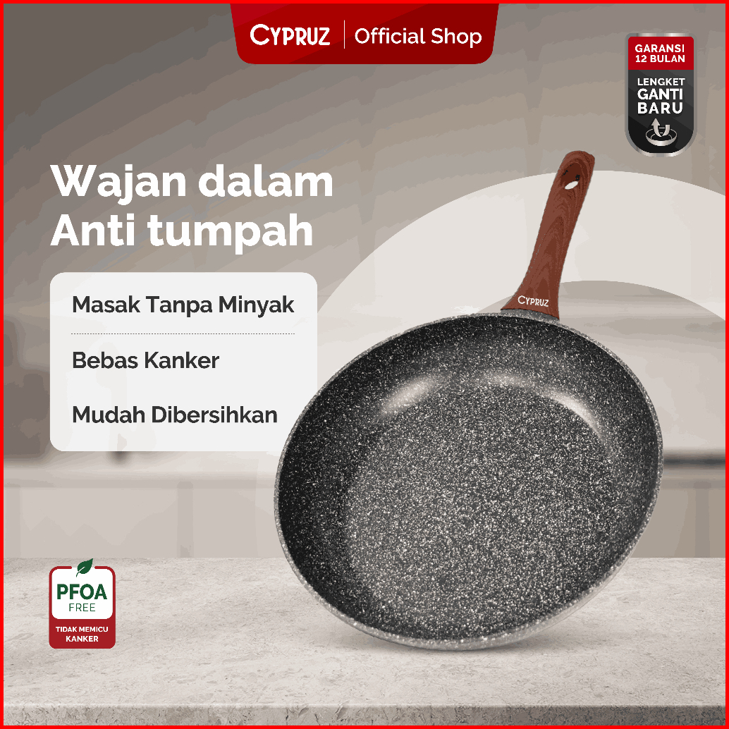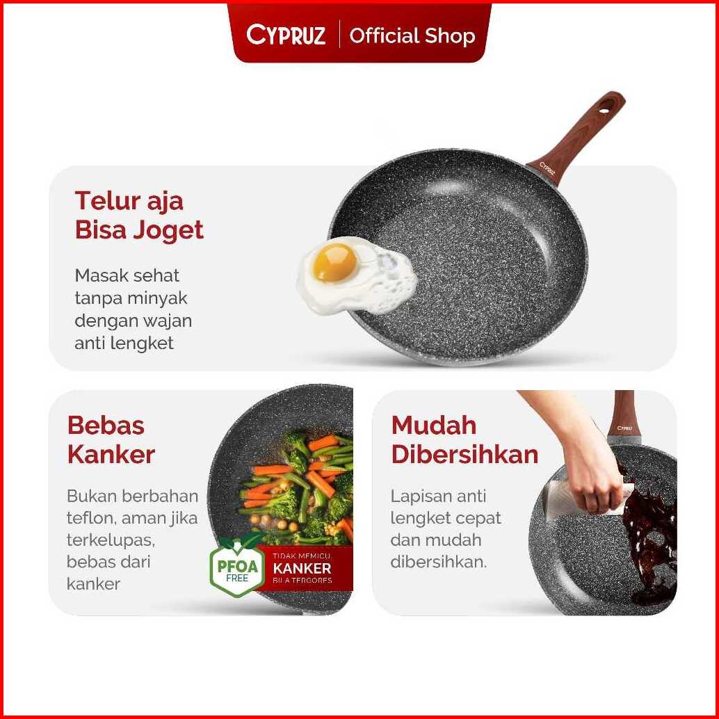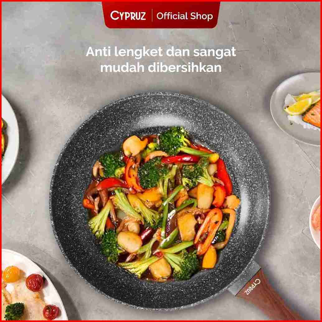 Cypruz Wajan Penggorengan Anti Lengket Fry Pan Marble Induksi Gagang Kayu 18cm